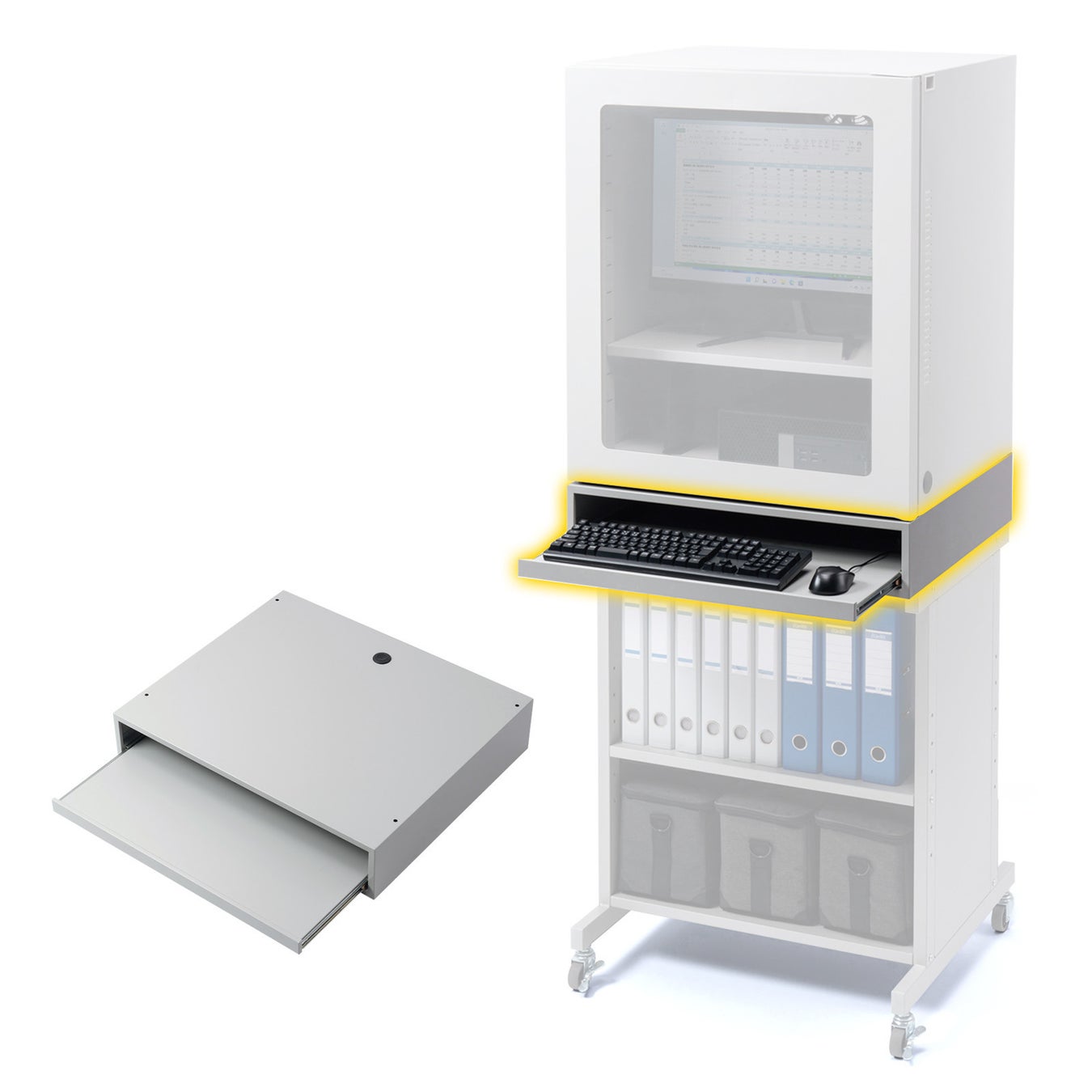 防塵ラックMR-FA〇シリーズ専用のキーボード収納台です。組み合わせることで、スペースを増設できます。