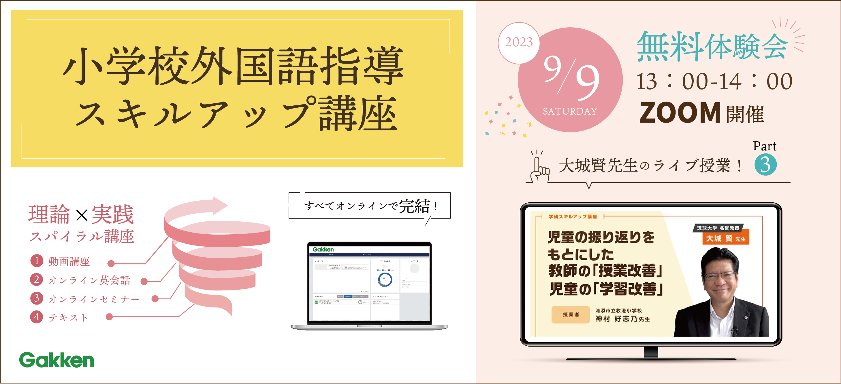 【9月9日開催!】小学校外国語指導力向上のためのオンライン講座「学研小学校外国語指導スキルアップ講座」無料体験会