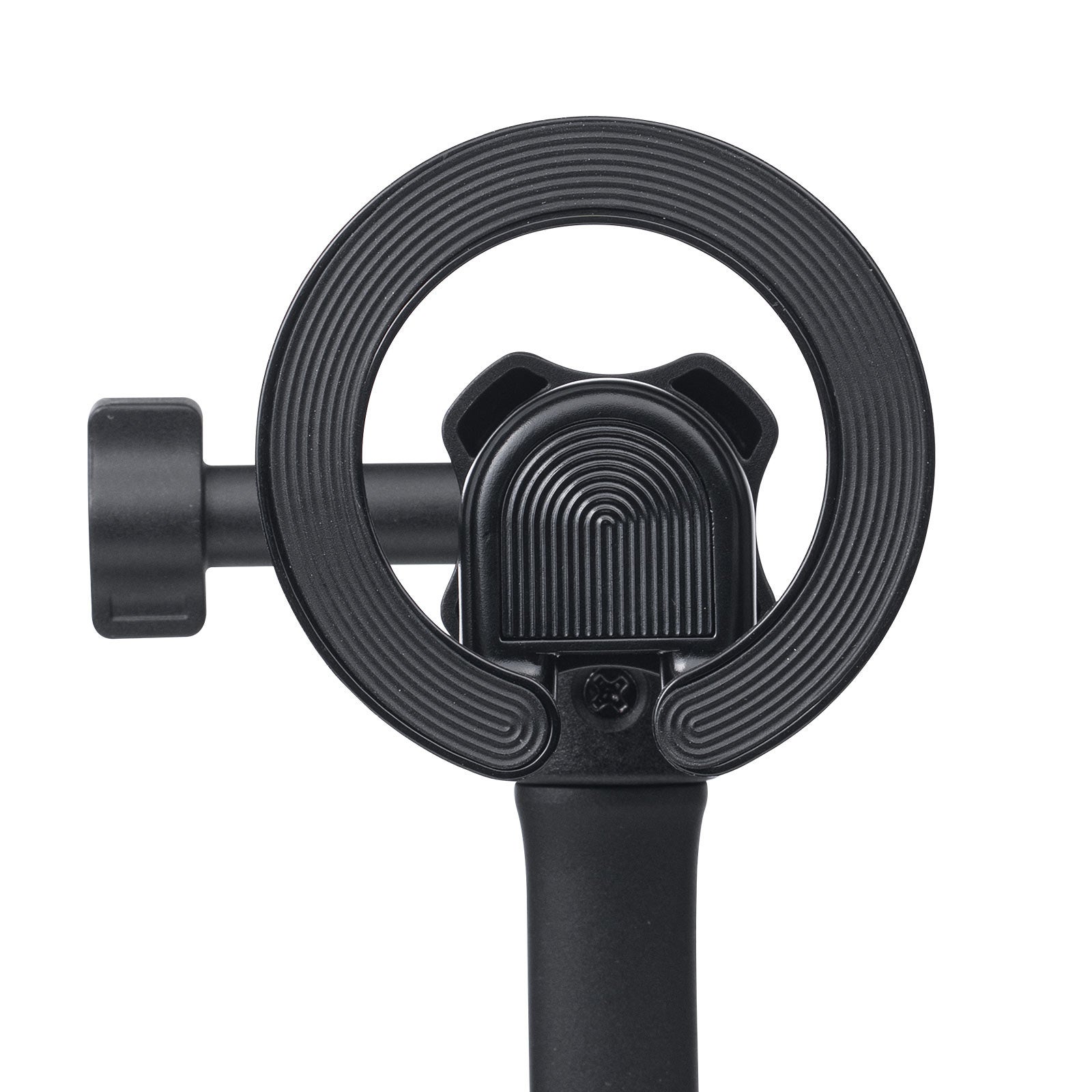 スマホ固定部は360度回転に対応し、縦横の切り替えも一瞬。スマホの固定方法は幅6.5~11cmまでのスマホを取り付けられる伸縮ホルダータイプ(200-DGCAM040)と、MagSafeに対応したマグネット固定タイプ(200-DGCAM041)の2種類からお選びいただけます。