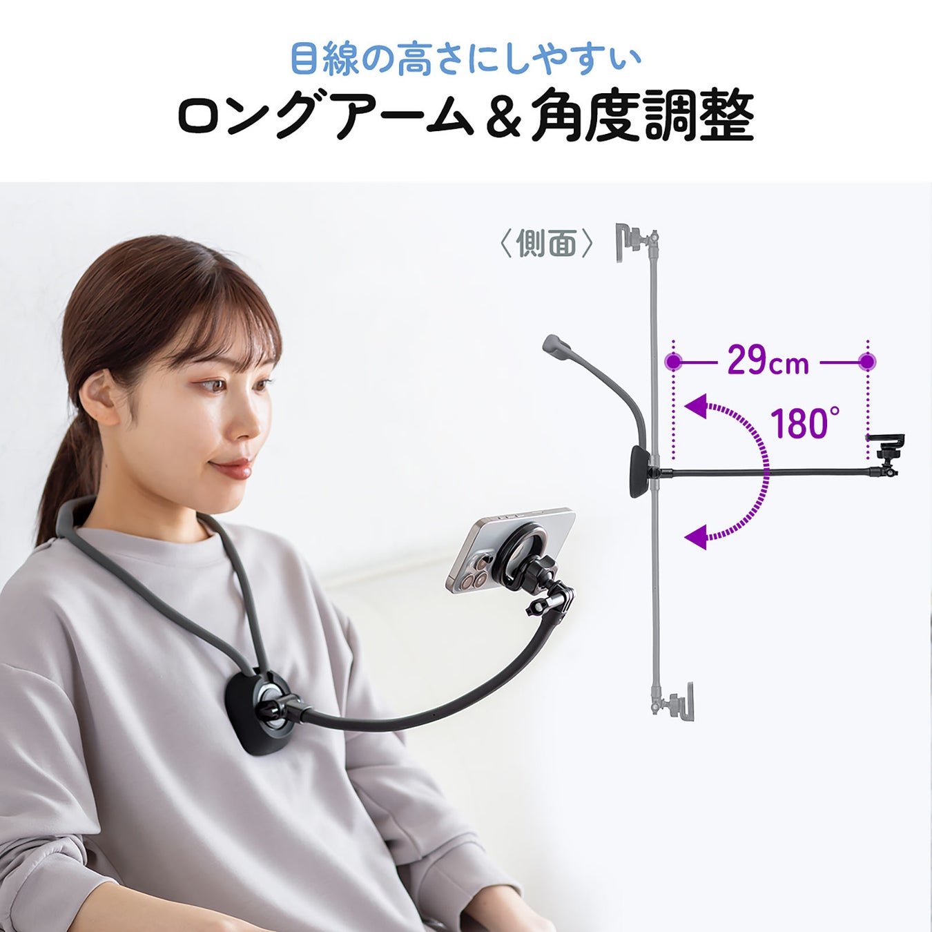首掛け スマホホルダー 動画視聴 撮影 寝ながらアーム ハンズフリー マグネット取付