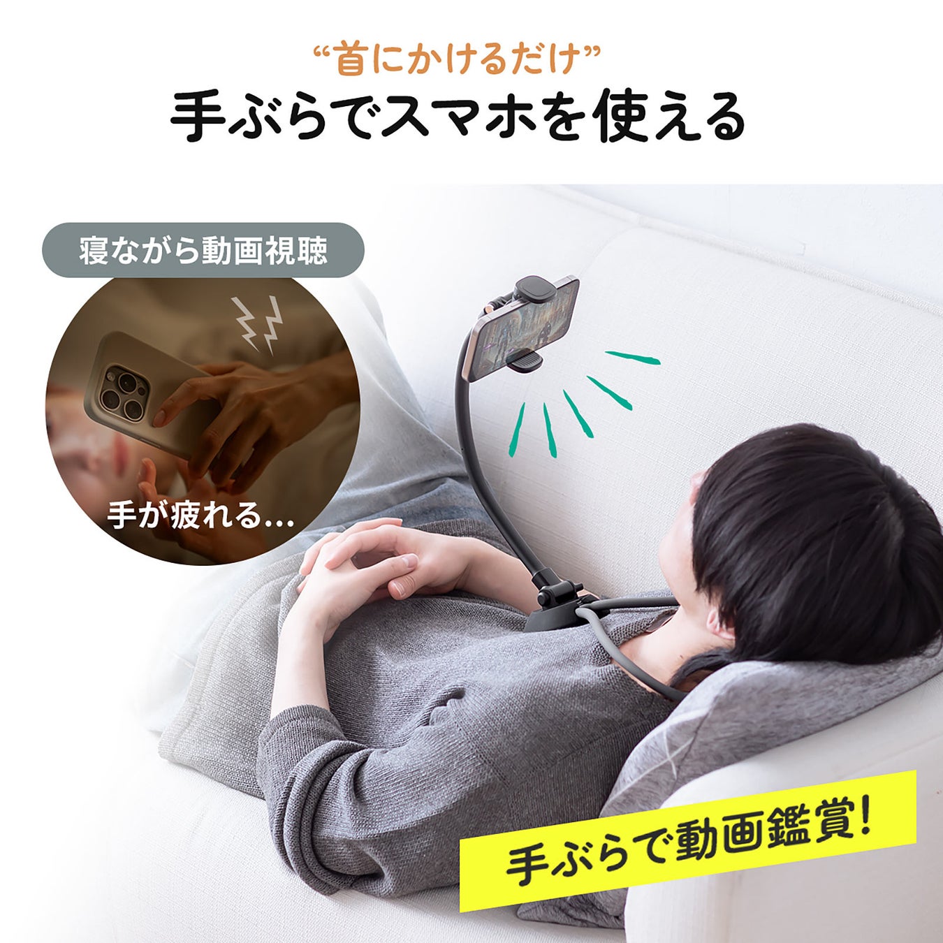 首掛け スマホホルダー 動画視聴 撮影 寝ながらアーム ハンズフリー 汎用ホルダー