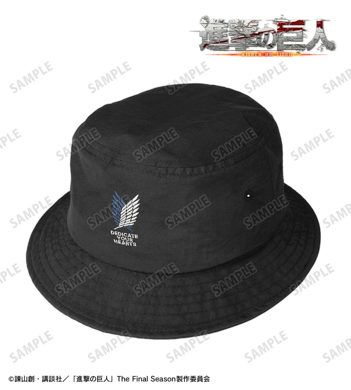 調査兵団のマークを刺繍でシンプルにあしらったデザインのバケットハットに仕上げました。