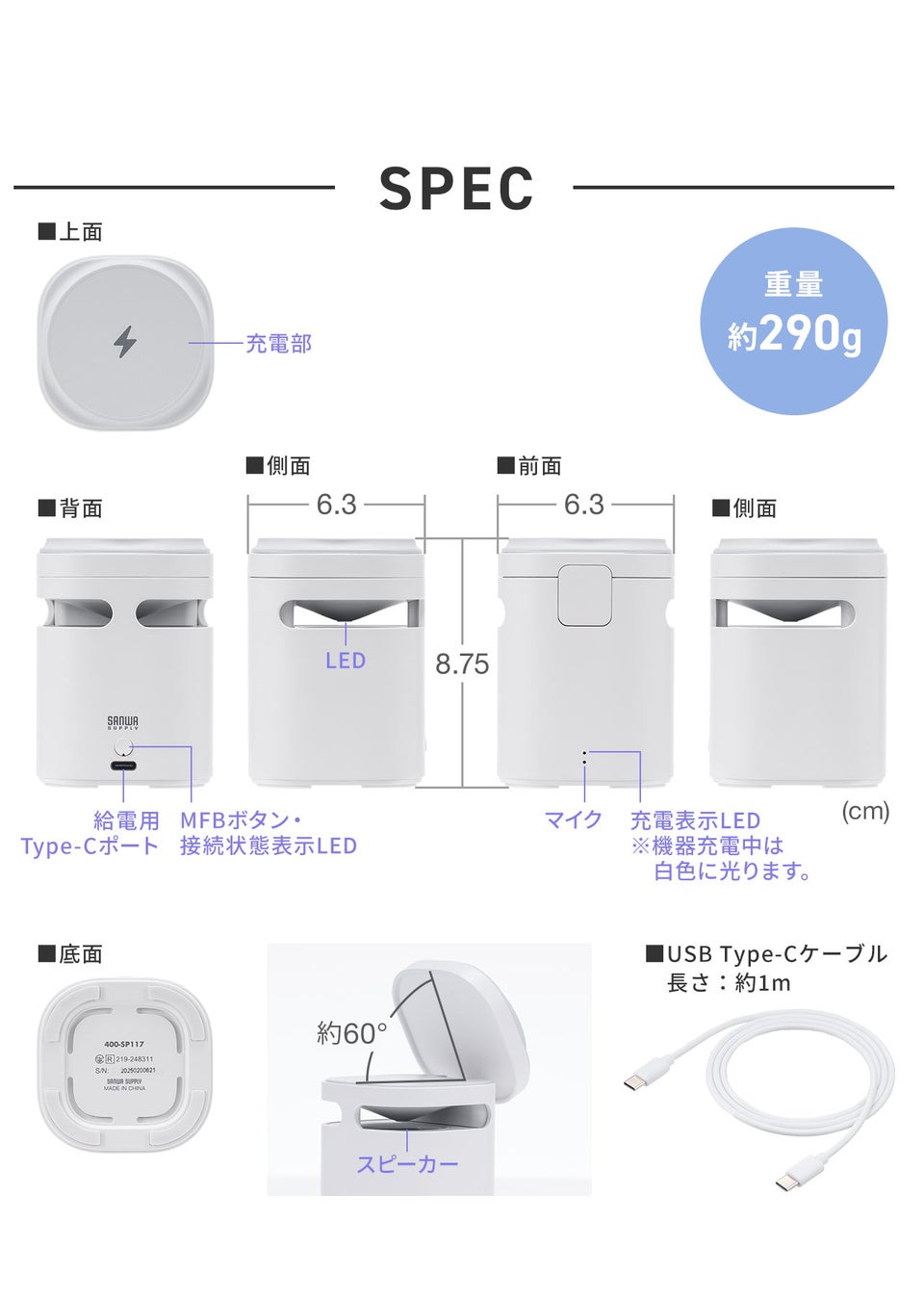 サンワサプライ株式会社(本社:岡山市北区田町1-10-1、 代表取締役社長 山田 和範)が運営している直販サイト『サンワダイレクト』では、スマホやイヤホンなどをワイヤレス充電可能な、コンパクトサイズのBluetoothスピーカー「400-SP117」を発売しました。