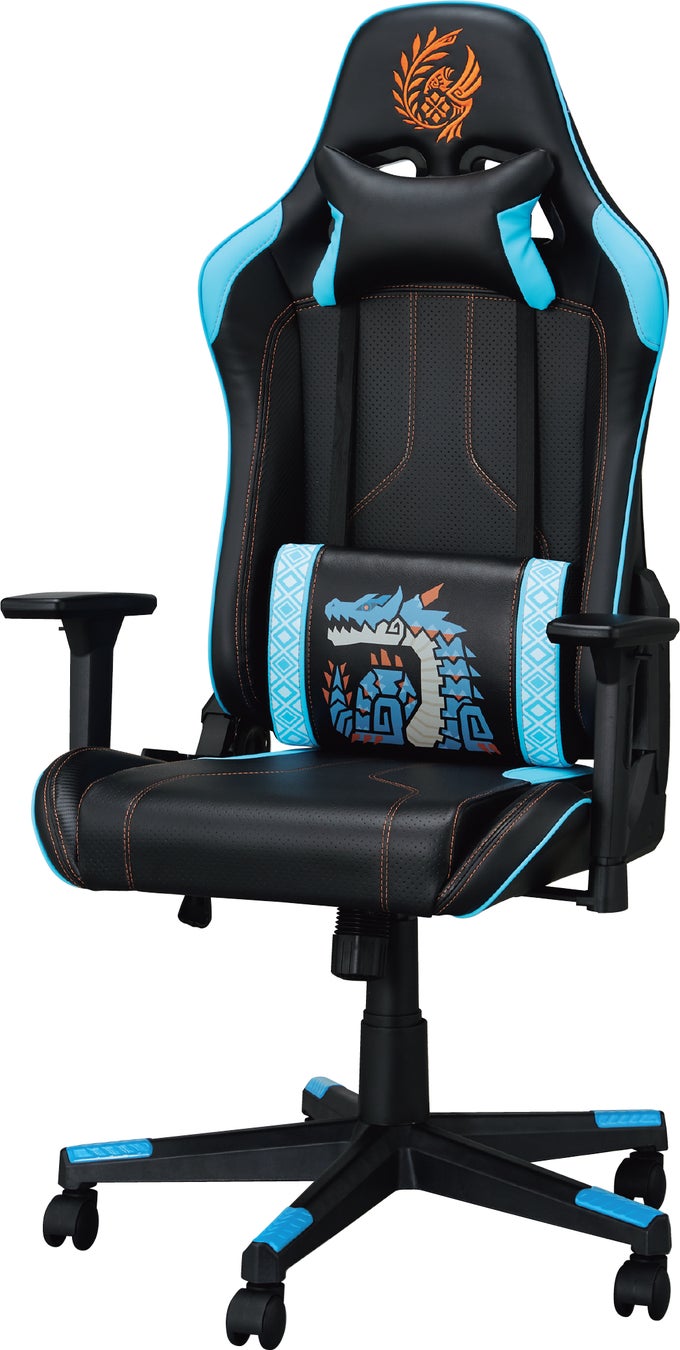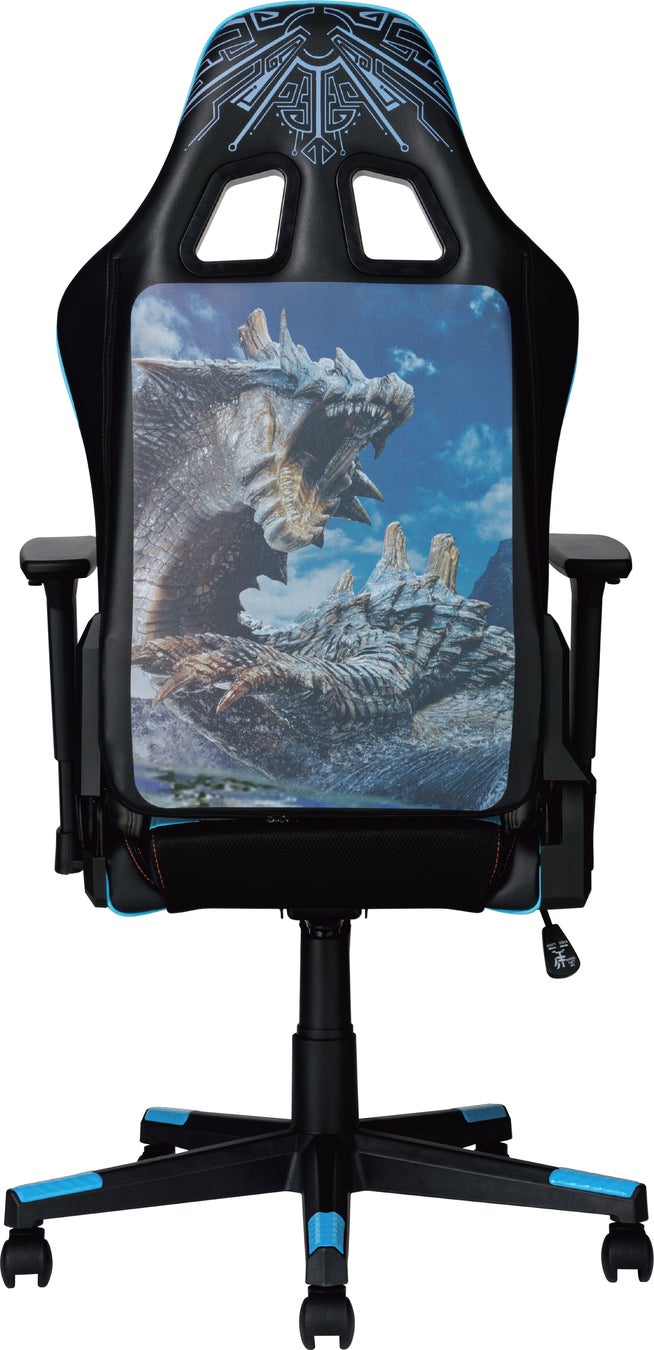 広大なる海洋の食物連鎖の頂点に立つ、「海竜 ラギアクルス」のアートやモンスターアイコン、調査隊のエンブレムなどをデザインに取り入れたゲーミングチェア。
