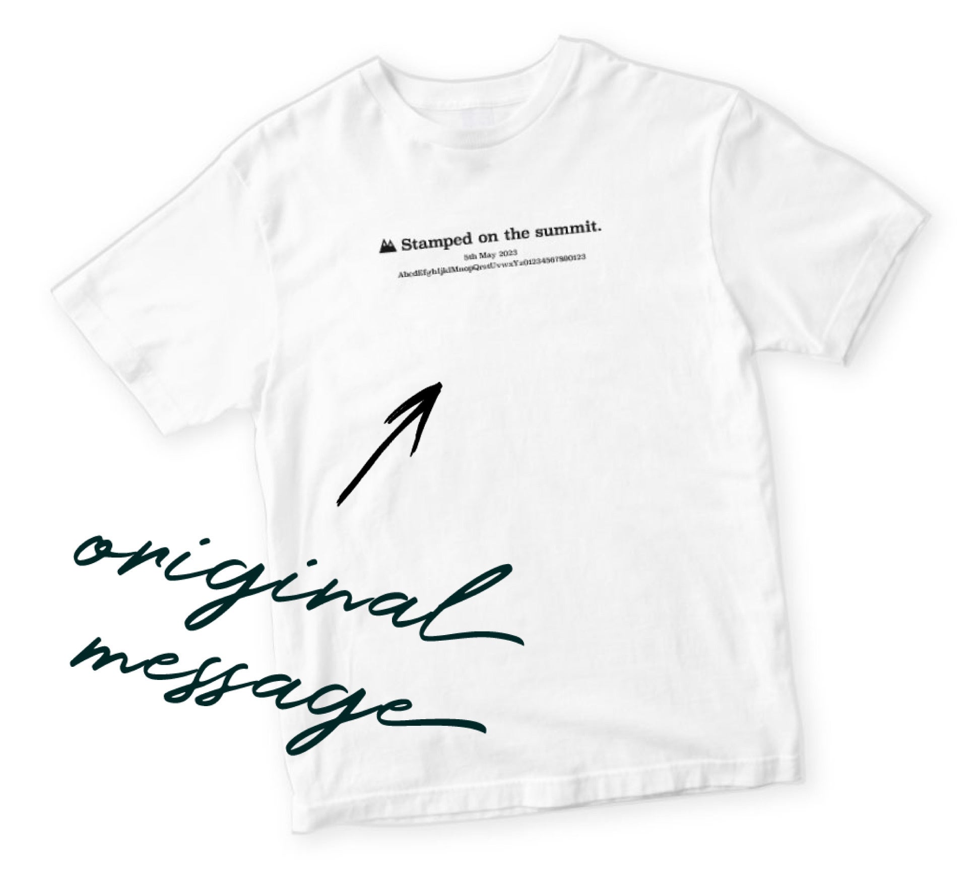 Tシャツの正面にオリジナルメッセージを組み込むことができます。好きな言葉や登山の思い出を刻んでオリジナルのTシャツを作ったり、大切な人への感謝の気持ちを記してプレゼントしたり、自分だけのとっておきの一枚が簡単に作れます。