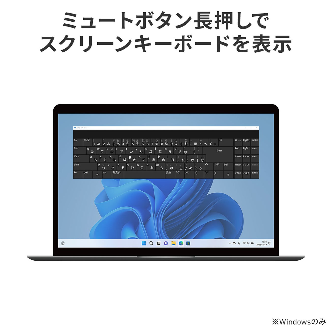 再生/停止や音量調節などの操作が行えるメディア操作キーを搭載。離れた場所でも操作ができるため、動画視聴がより快適になります。また、新たにミュートボタンを追加。ボタン一つでミュートすることができ、ミュートボタンを長押しすることで、スクリーンキーボードを表示することも可能です。