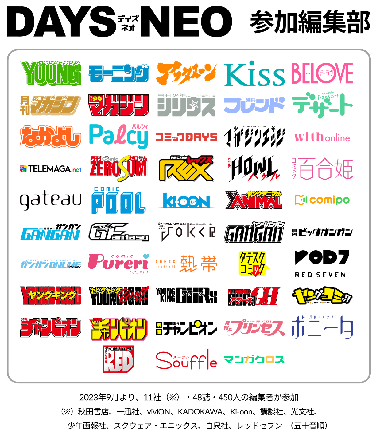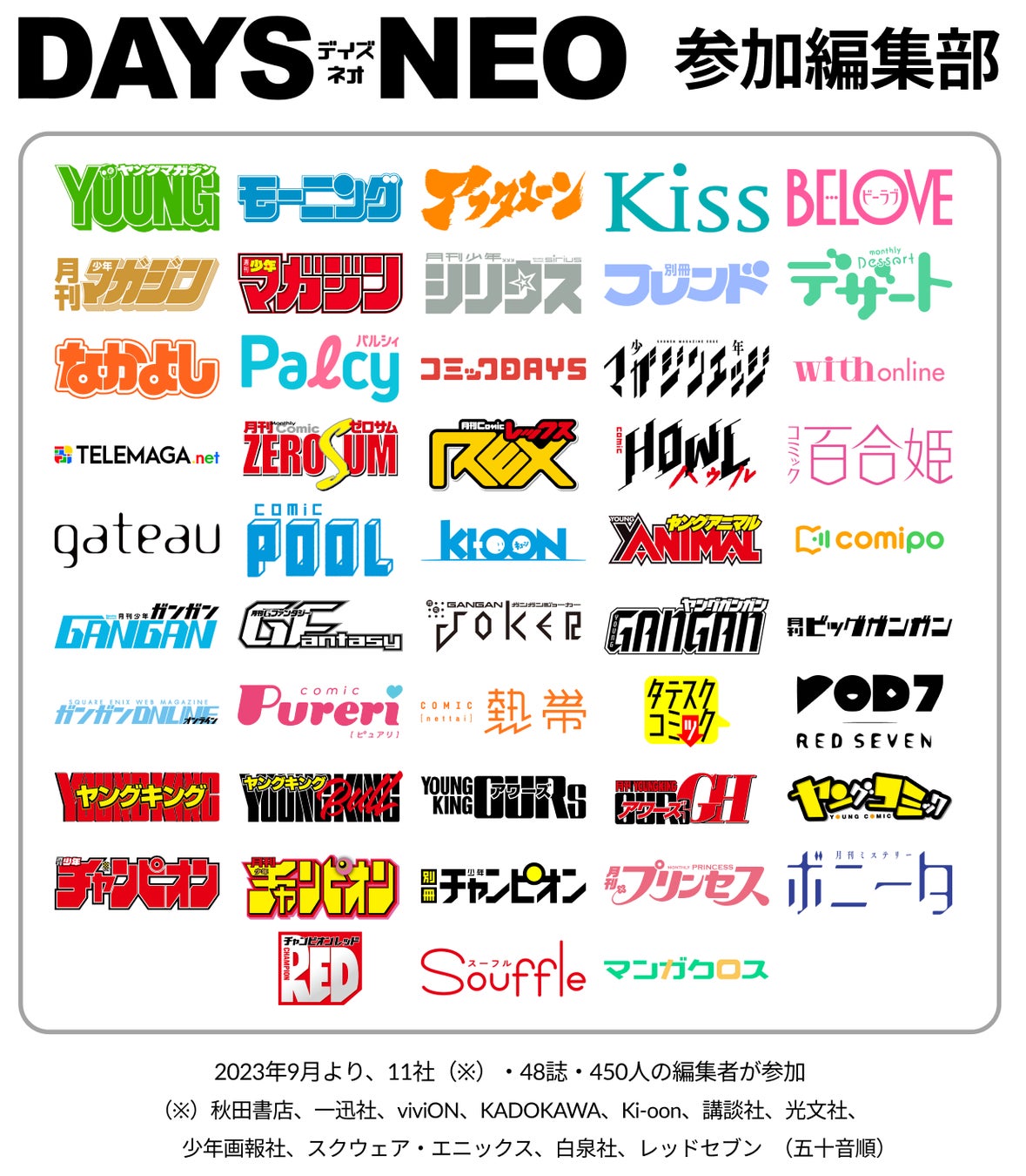 これによりDAYS NEOは「11社・48誌・450人の編集者と出逢えるマンガ投稿サイト」に進化します。