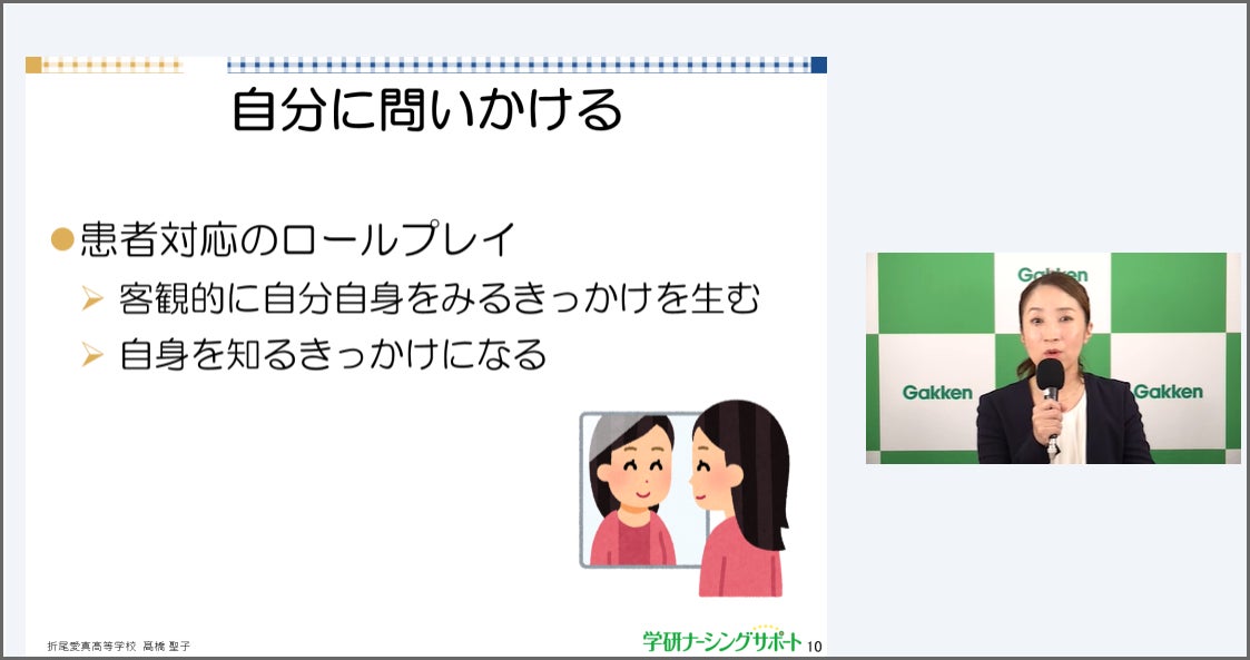 ●「学研ナーシングサポート」のなかの1テーマ『患者のきもちを知り、看護を考えるロールプレイ』を事前に視聴