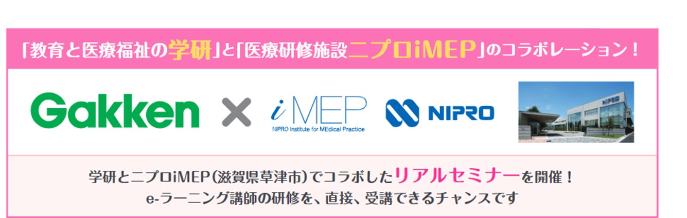 学研メディカルサポート(看護師向けe-ラーニング提供)が、医療研修施設ニプロiMEPとコラボした研修を開始