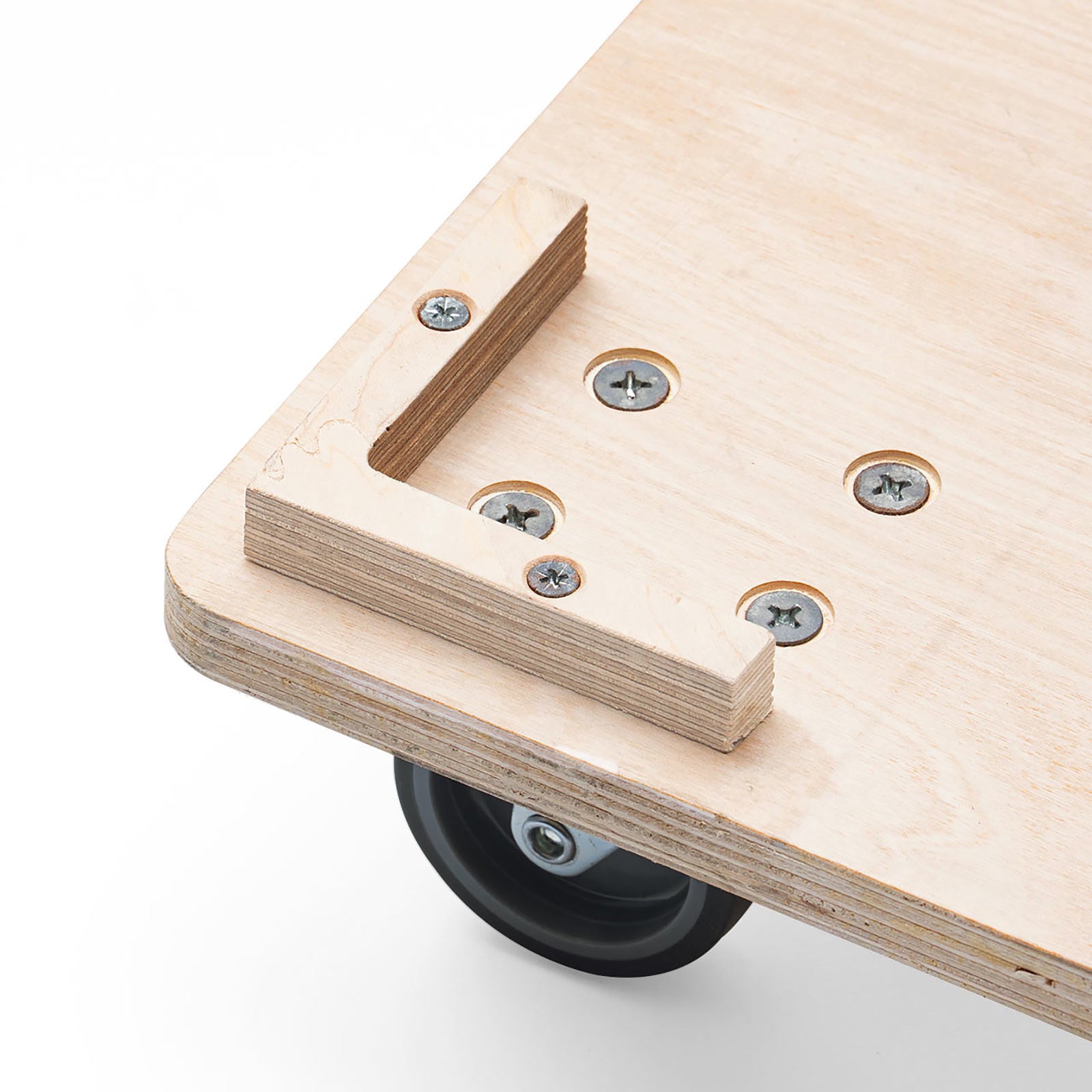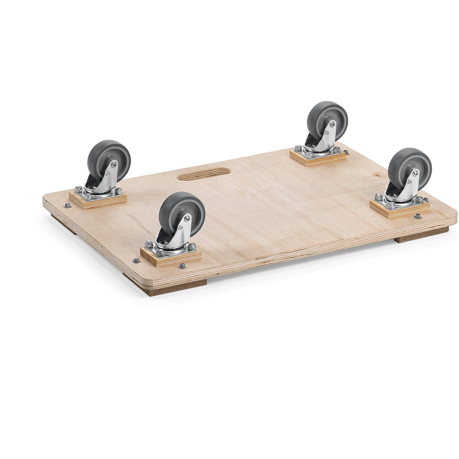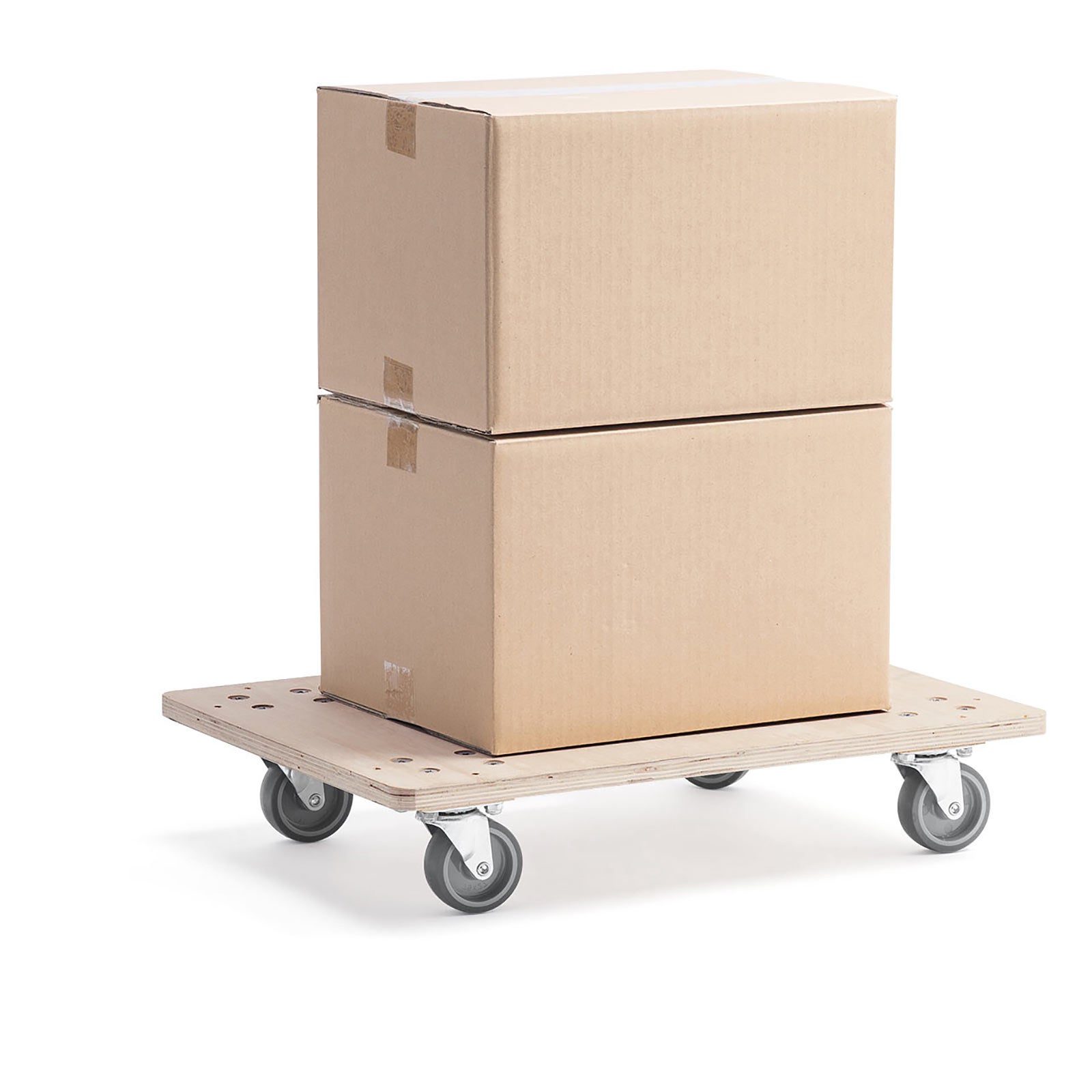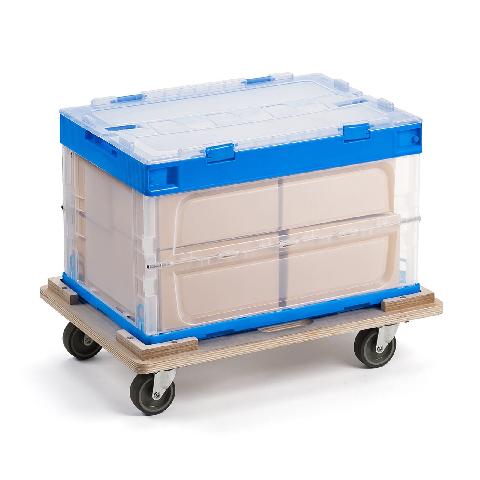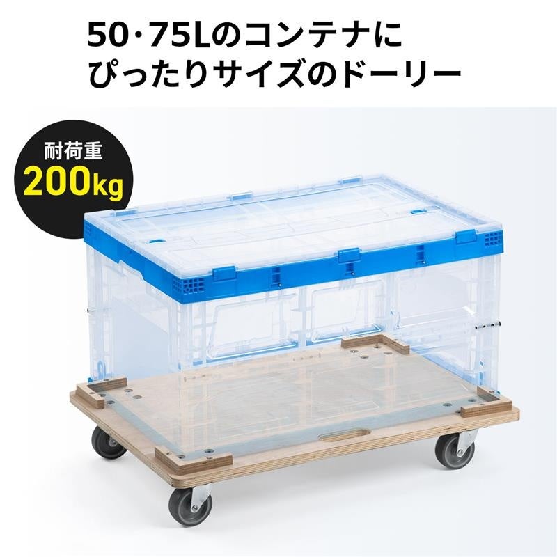 コンテナがずり落ちない200kgの高耐荷重で75Lと50Lのコンテナにピッタリサイズの木製ドーリーを4月30日に発売