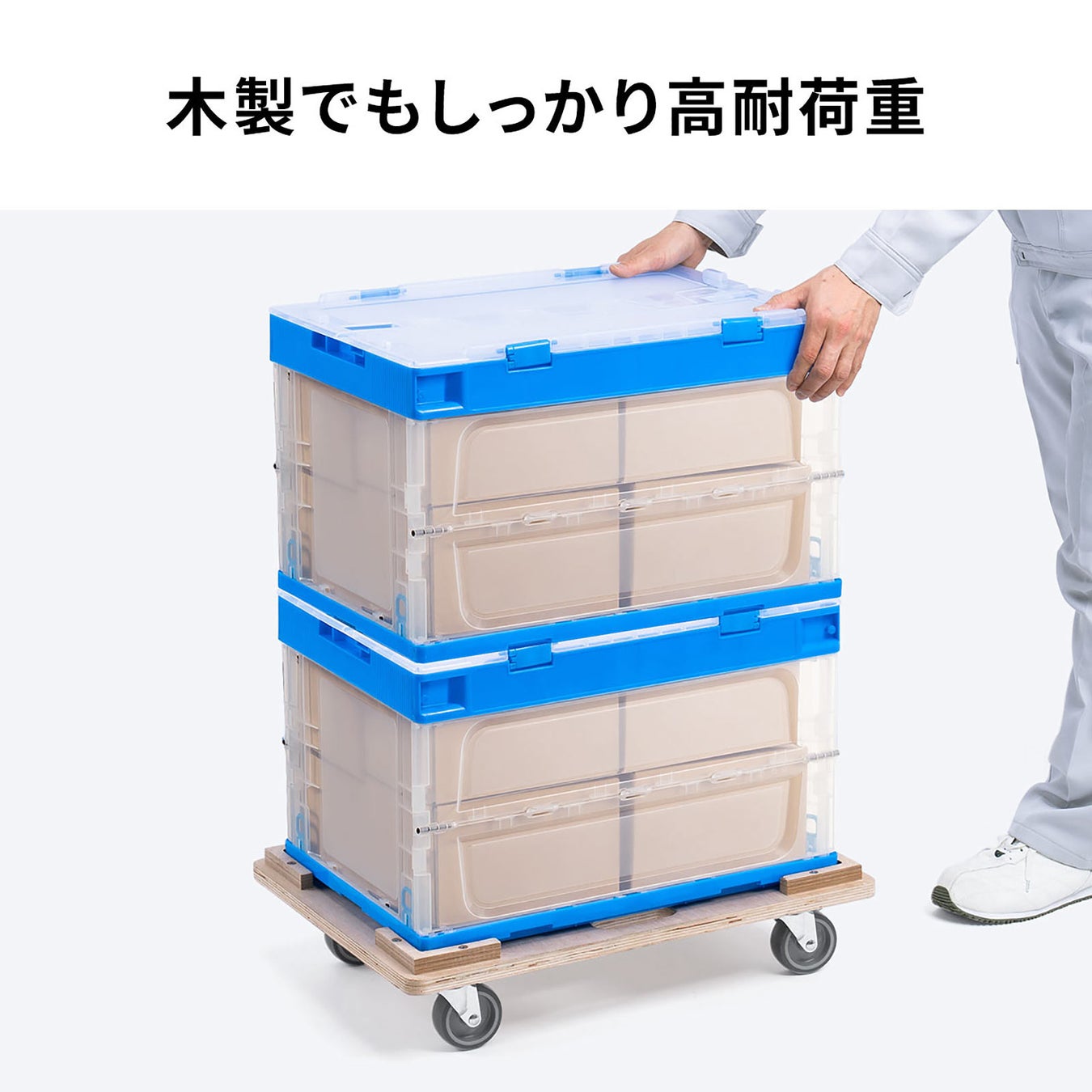 木製ドーリー 平台車 耐荷重200kg 75Lコンテナ対応 積み重ね可能 取っ手 キャスター付 木枠 取り外し可能 オリコン 倉庫 Lサイズ