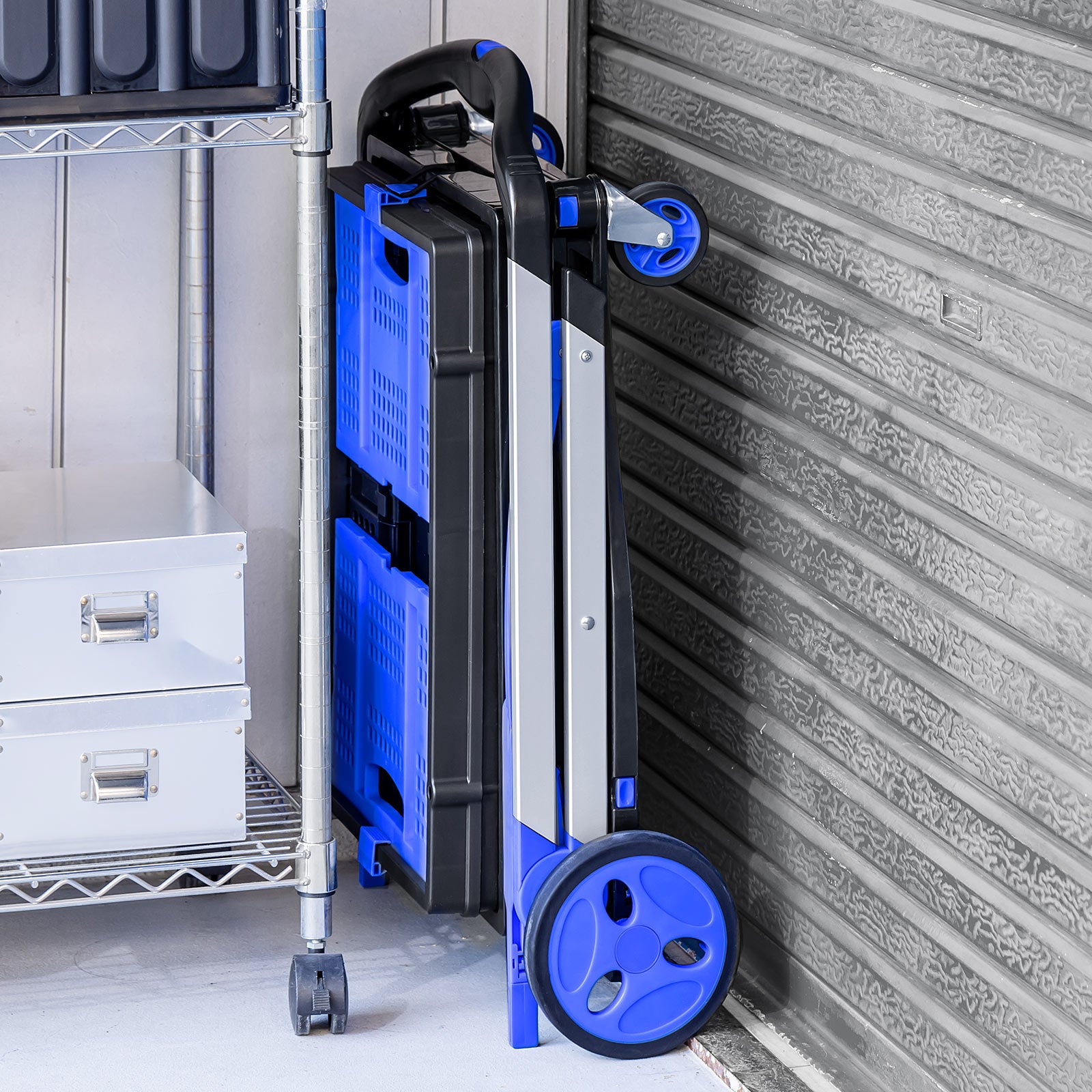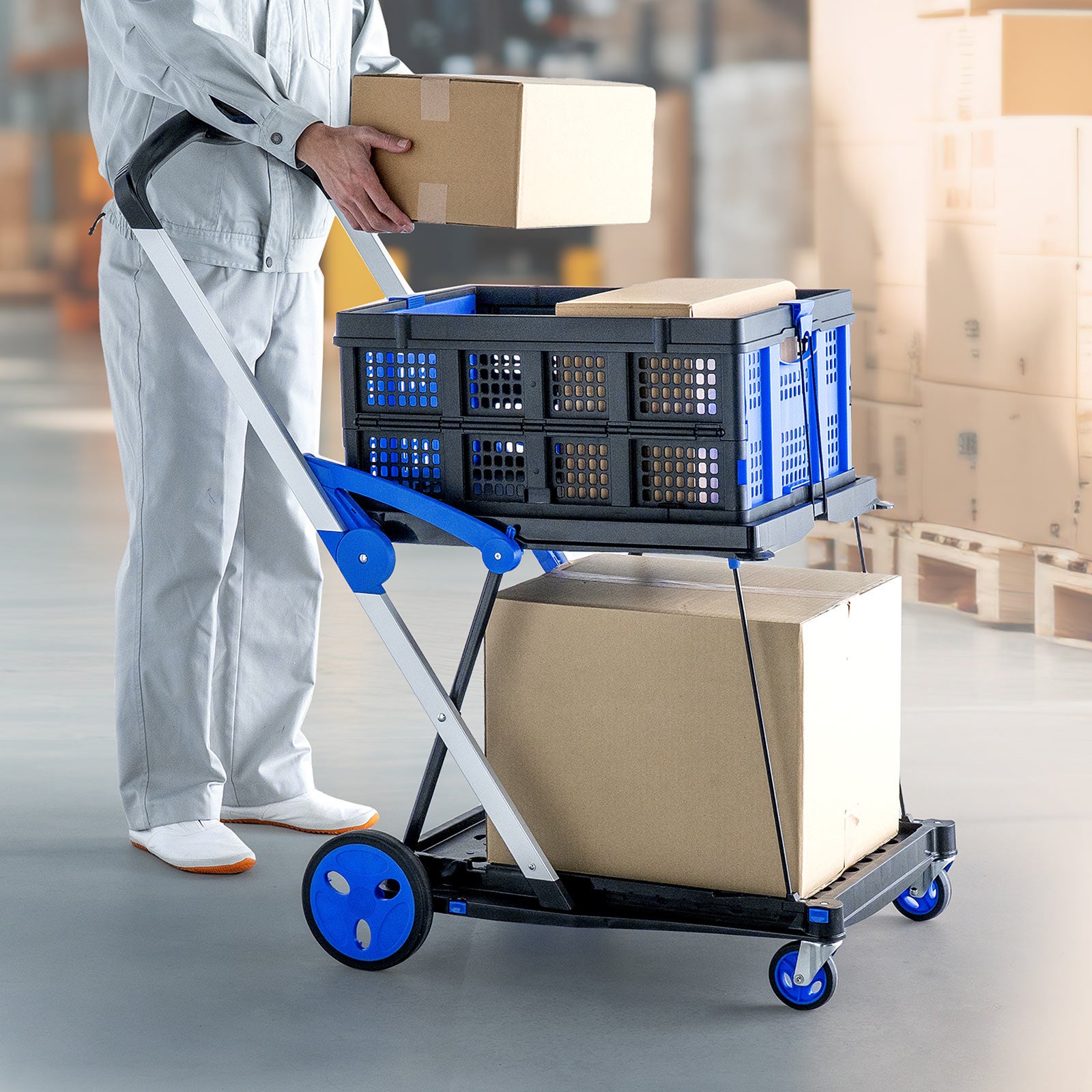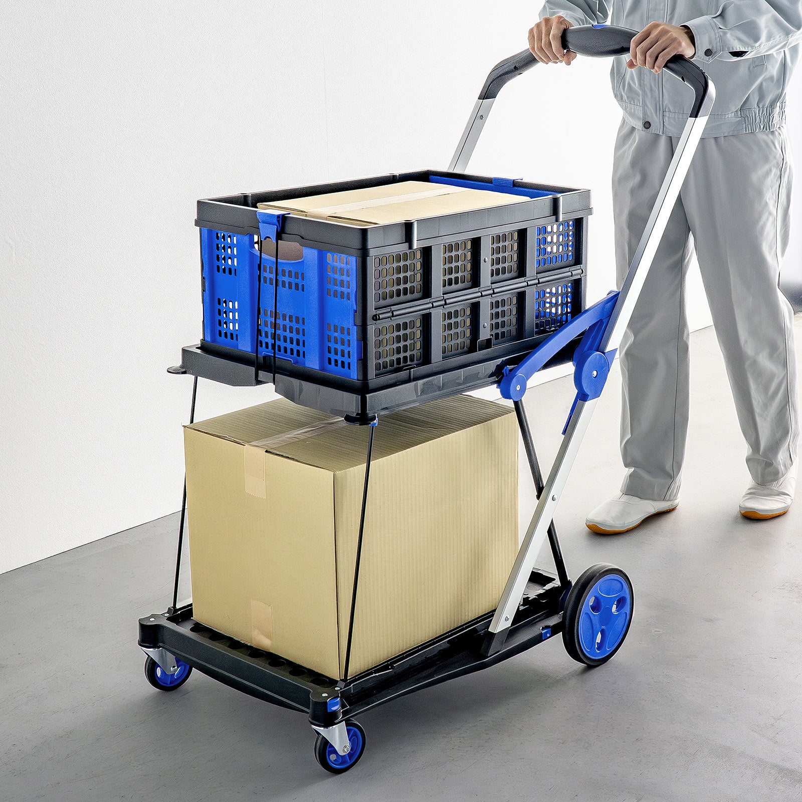 専用コンテナ付きで折りたたみできる2段式カート