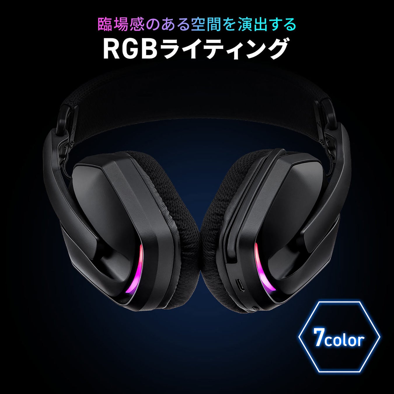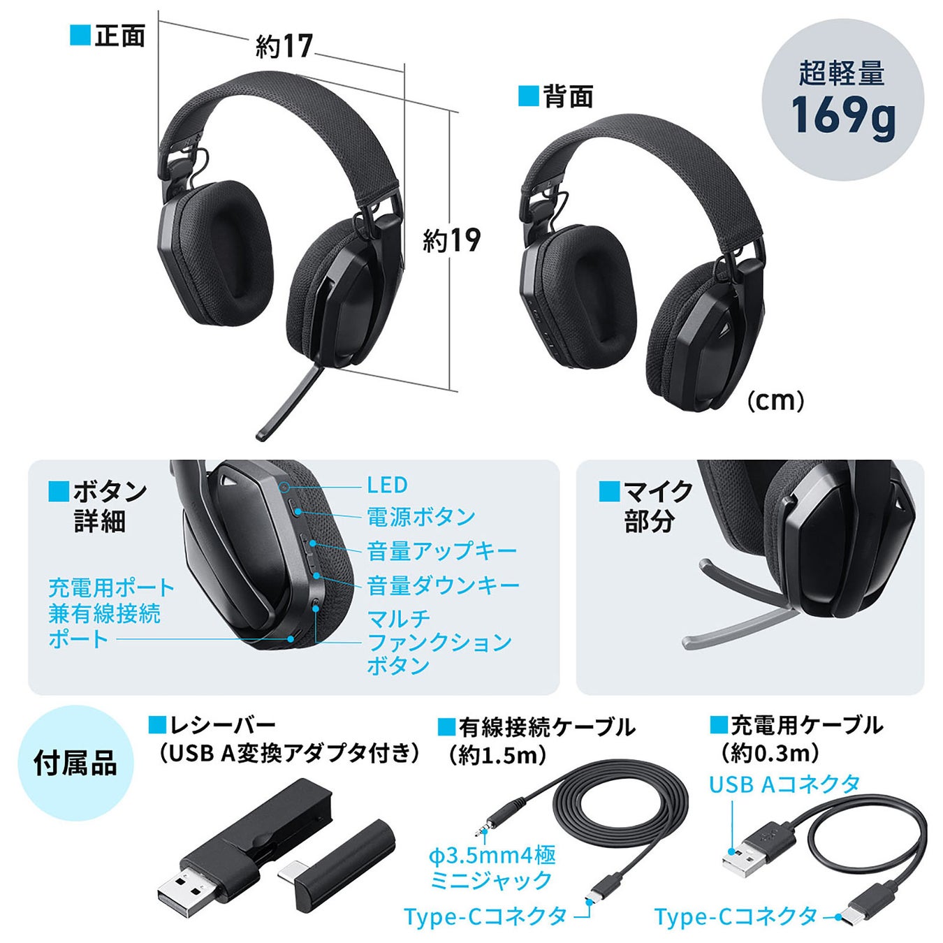 ワイヤレスヘッドセット ゲーミング eスポーツ 軽量 169g ミュート マイク付き 無線 2.4GHz USB A&Type-Cレシーバー 有線接続 RGB LED付き