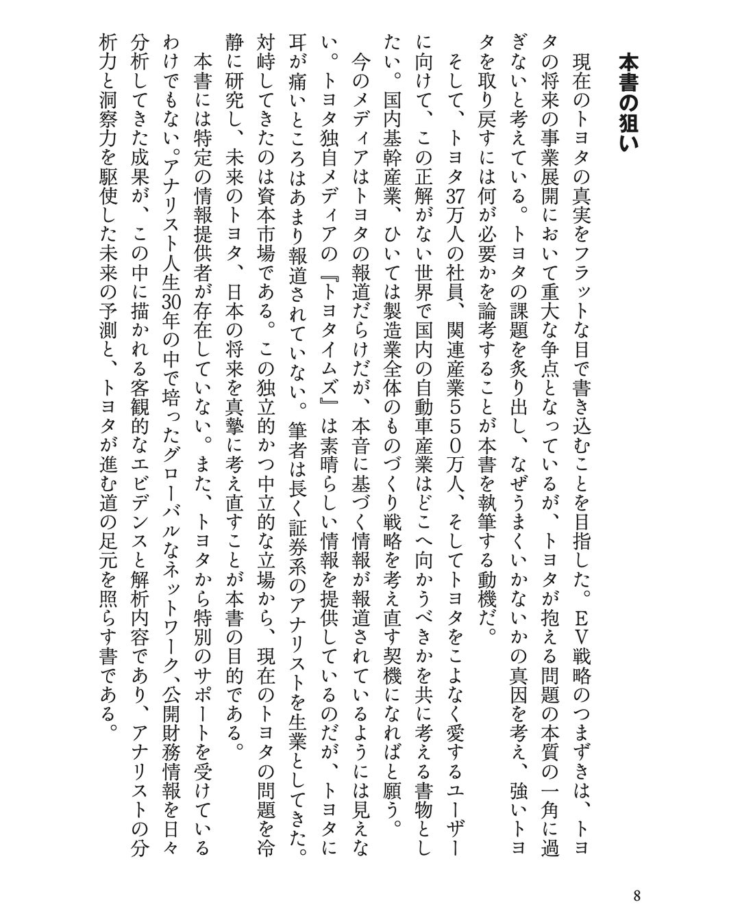 「壮大なる消耗戦」の様相を呈してきたこの戦いに、トヨタはどう挑み、勝ち抜こうとしているのか? その戦略を詳細に分析するとともに、トヨタの課題を炙り出し、強いトヨタを取り戻すには何が必要かを論考し、さらに、世界の自動車産業がこの先に進む、未来の姿も提示する。