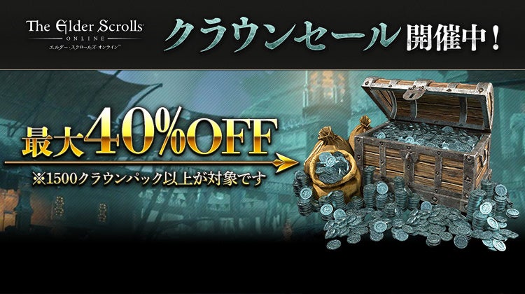 『ESO』では様々な種類のアイテムをゲーム内の「クラウンストア」で購入できます。その「クラウンストア」で使用できる通貨「クラウン」が、期間中お得な価格でお求めいただけます!