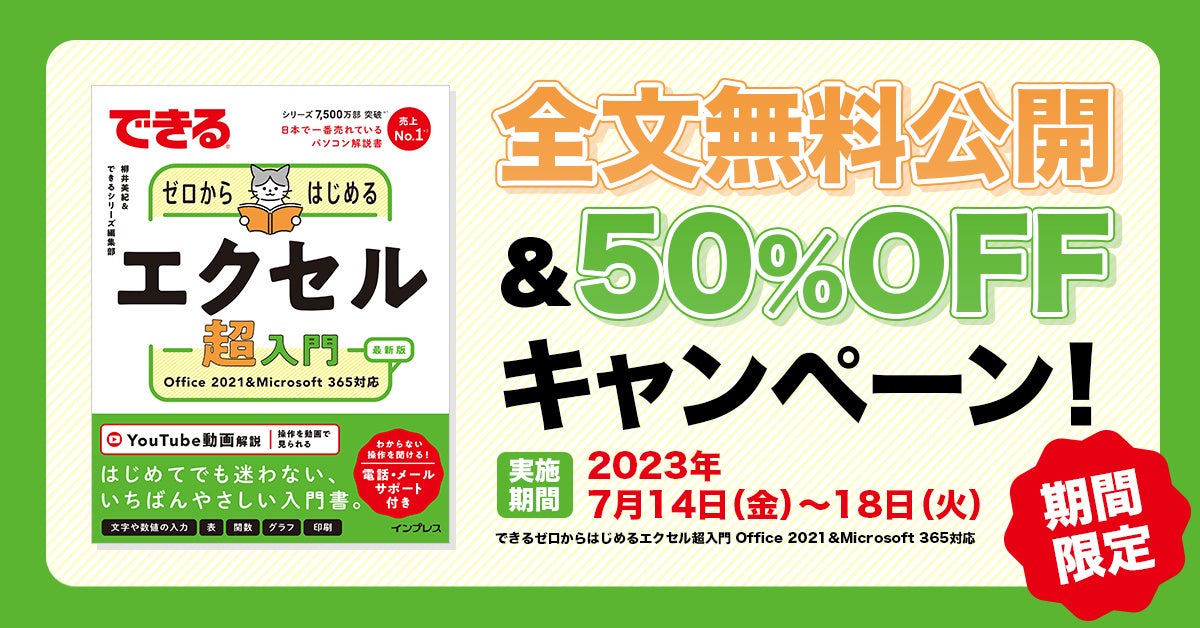 『できるゼロからはじめるエクセル超入門』の重版を記念して、5日間限定で全文無料公開!電子書籍の50%オフキャンペーンも実施