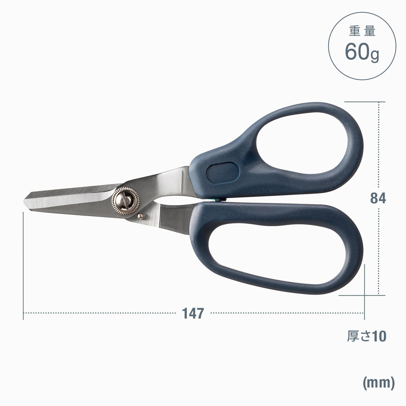 幅84×厚さ10×高さ147mm、重量は60gです。