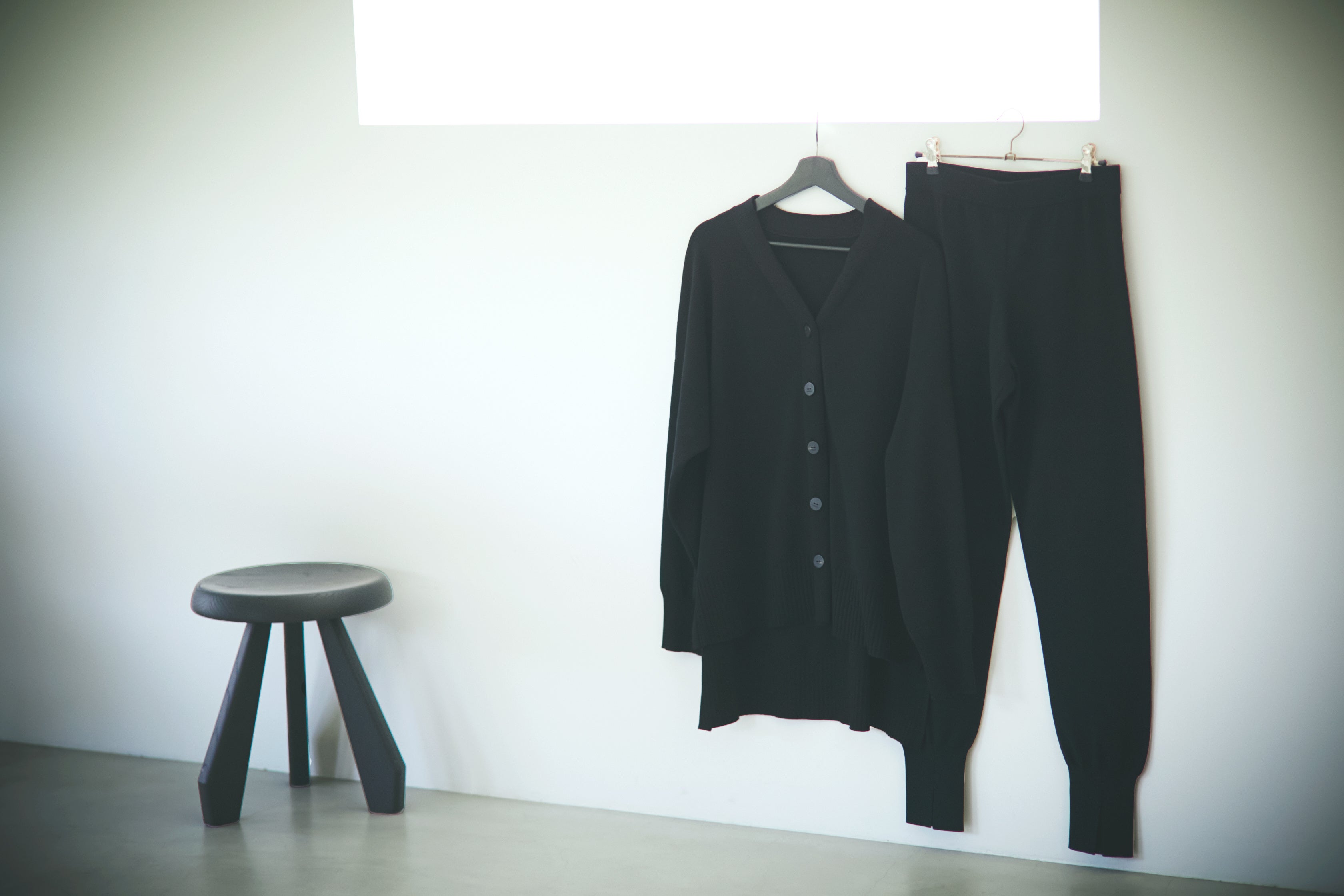 今回発売させていただくのは、「ニットカーディガン」と「ヴィスニットパンツ」の2アイテム。ル フィルの大ヒットアイテムであるジョガーパンツ「ヴィスニットパンツ」とセットで着られる同素材のカーディガンを別注しました。単品ではもちろんのこと、上下セットで着た時のベストバランスをディレクターの福田麻琴さんが細かく調整! 大人にぴったりのセットアップが完成しました。