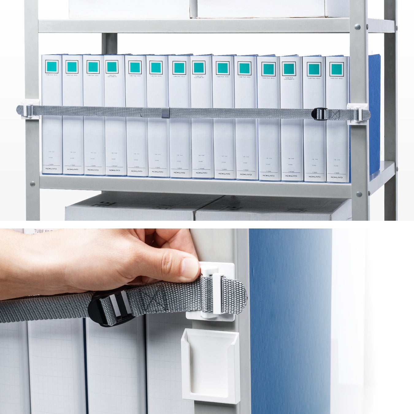 大きな揺れでもしっかりと収納物をガード、棚の荷物の落下を防ぐ耐震ベルトを発売