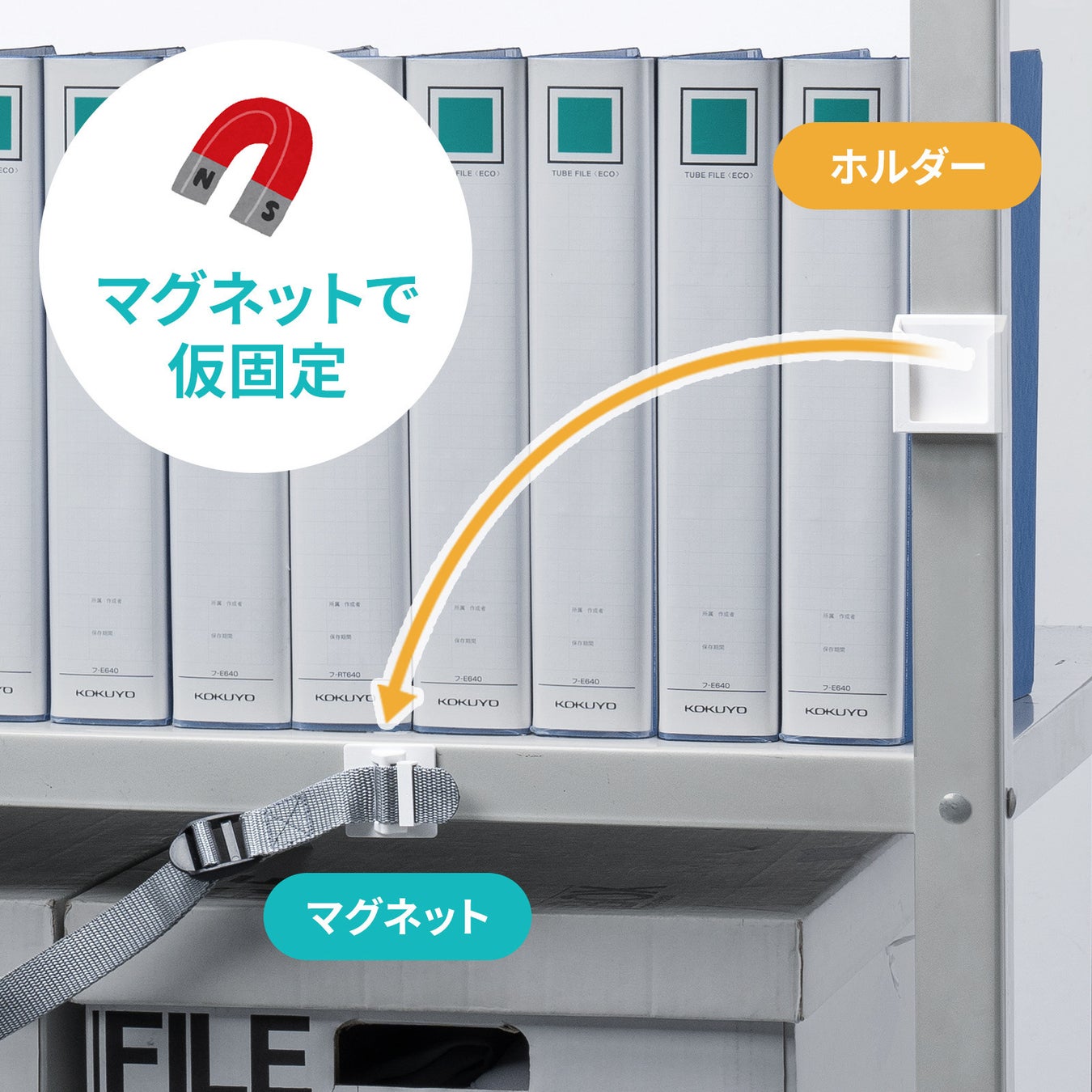 また、ベルトは簡単に脱着可能で、取り外した際には裏面の磁石でスチールラックなどに仮り止めできます。