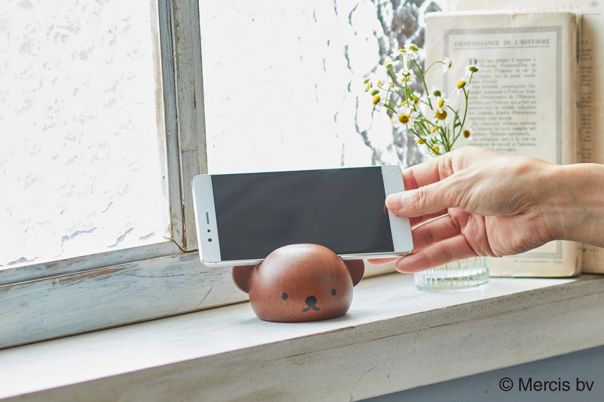 ころんとしたフォルムがかわいい、ボリスの横置き専用スマホスタンド。