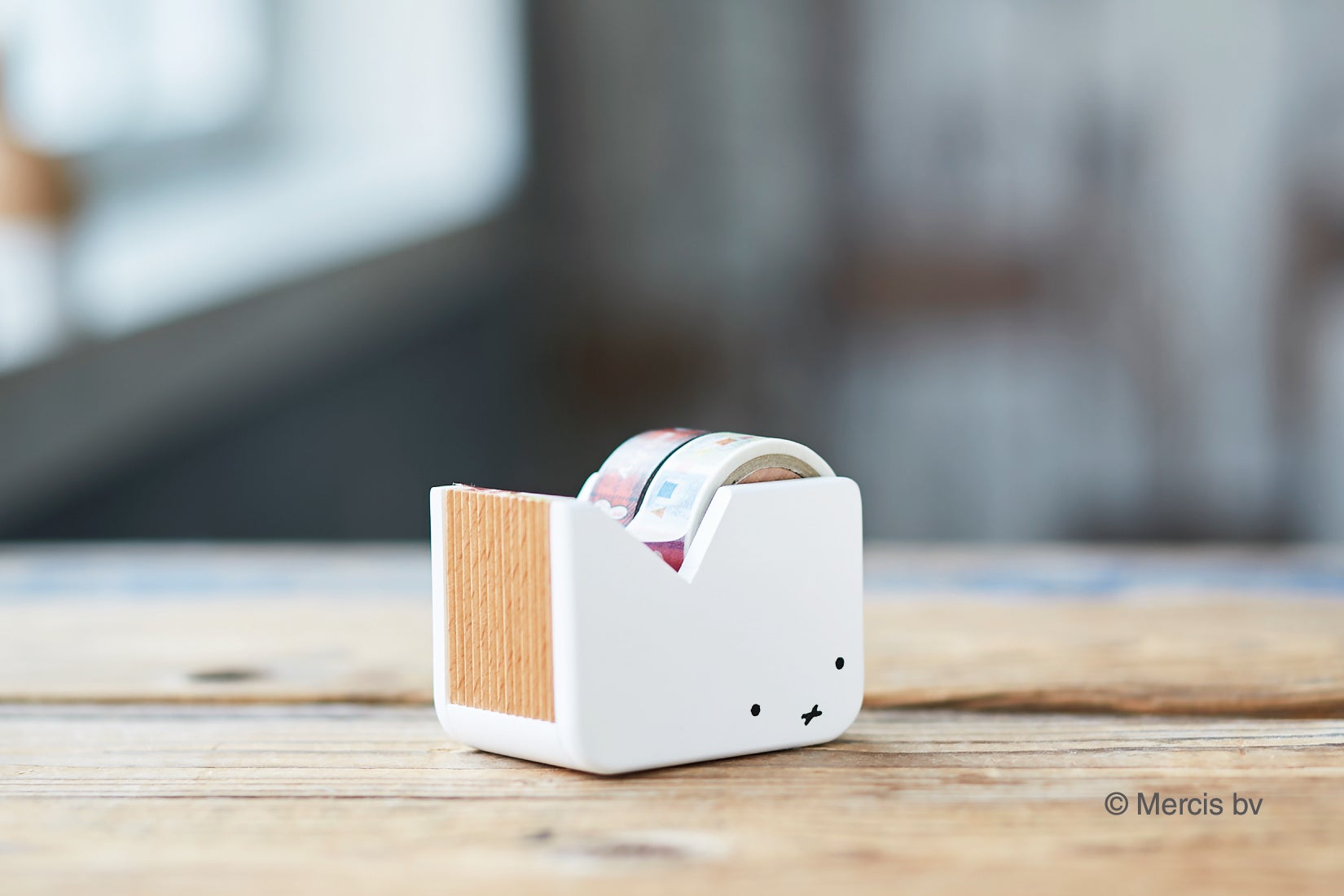 デスク周りで役立つ、小さくてかわいいミッフィーをあしらったマスキングテープカッターです。刃の部分が木製なのでケガすることもありません。15㎜幅のマスキングテープが2本入ります。