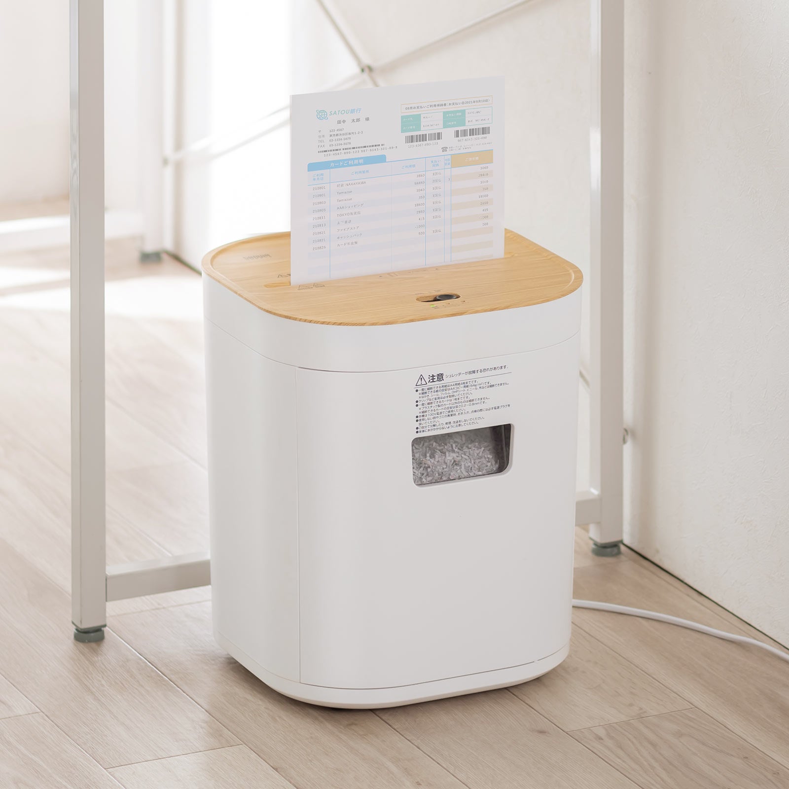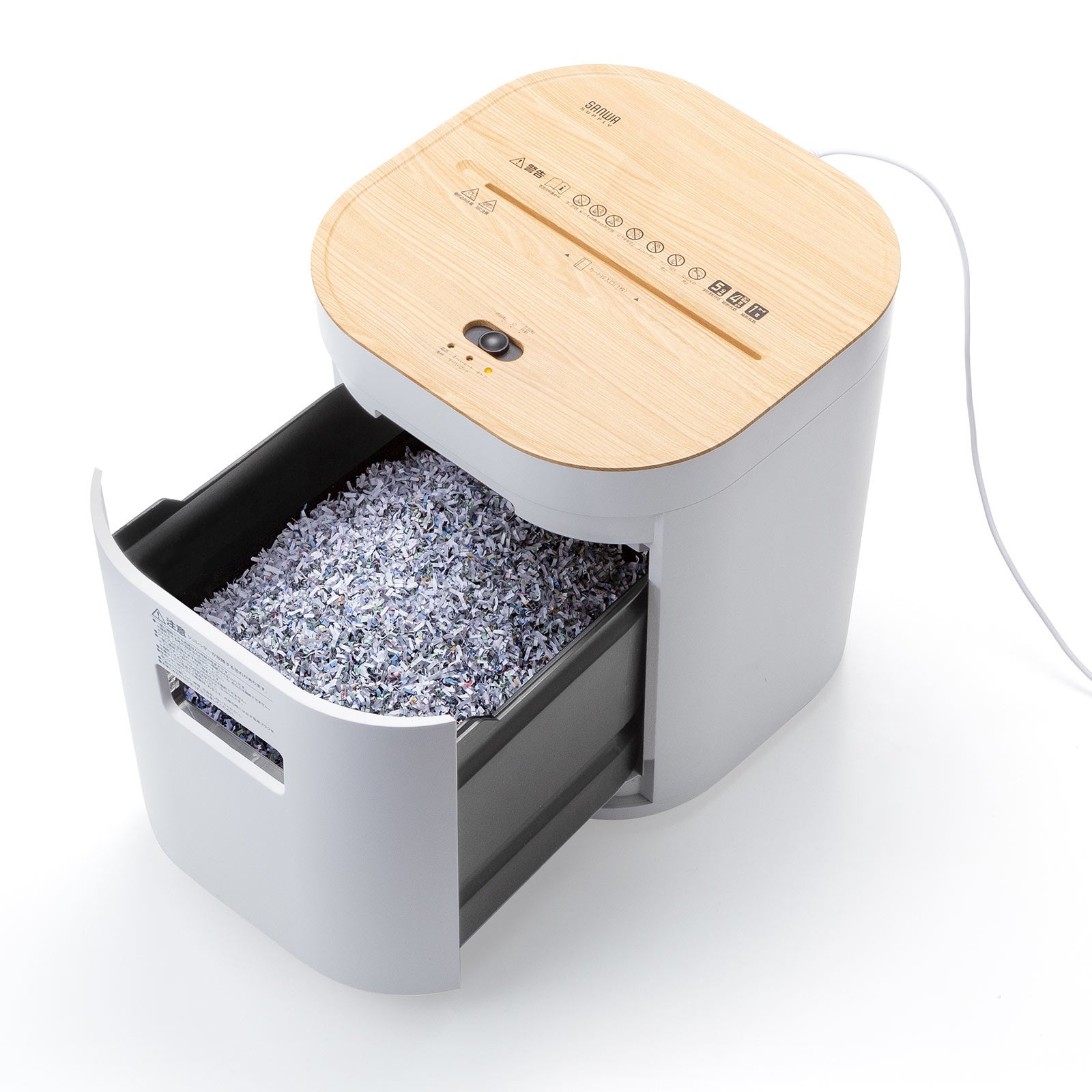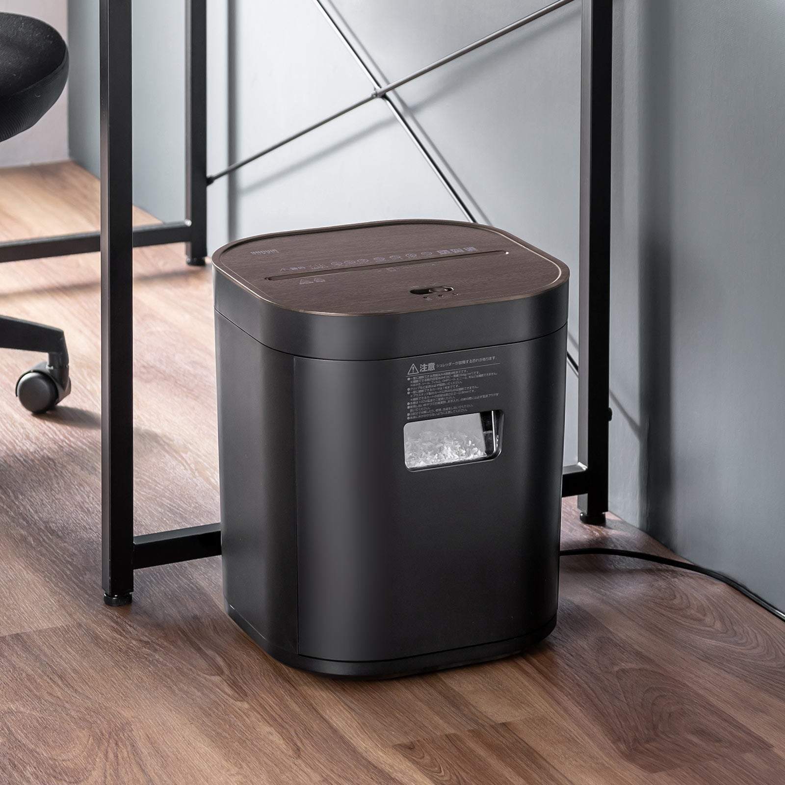 コンパクトでおしゃれな木目調デザインを採用した静音性に優れたマイクロカット対応のパーソナル電動シュレッダー