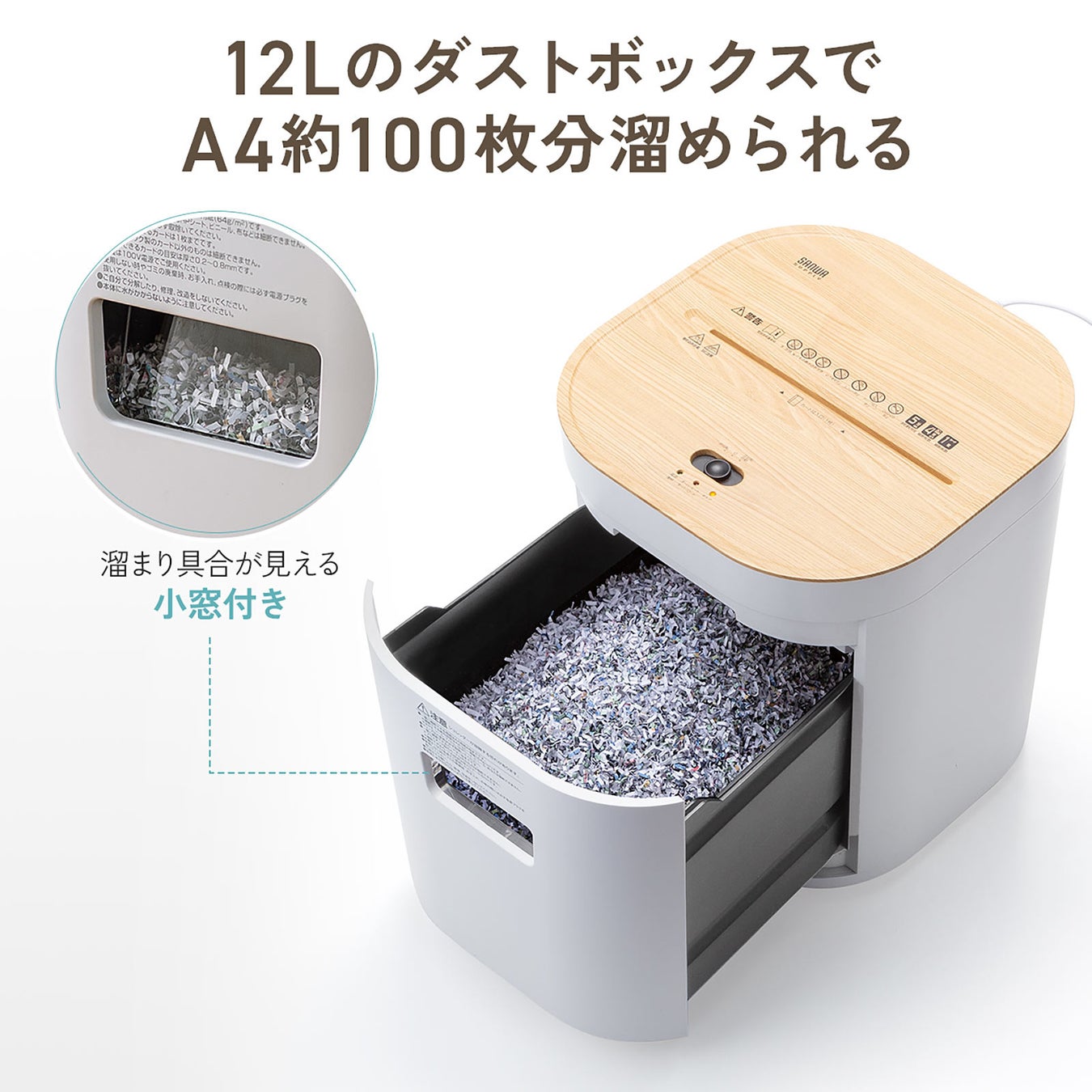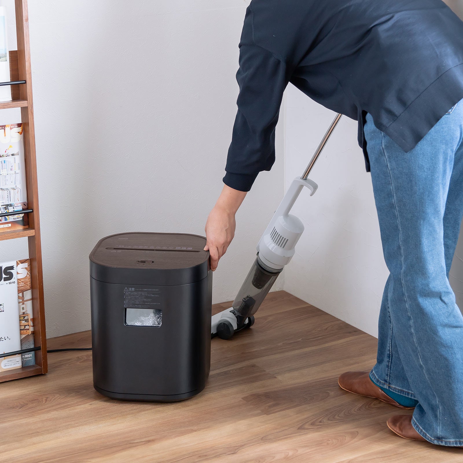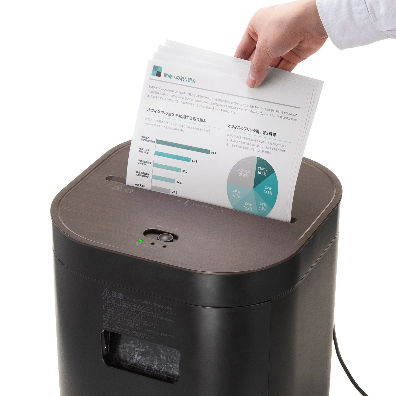 コンパクトでおしゃれな木目調デザインを採用した静音性に優れたマイクロカット対応のパーソナル電動シュレッダー