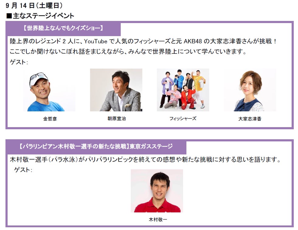 令和6 年 9 月 13 日(金曜日)・ 14 日(土曜日) 東京ドームシティ ラクーアにて豪華ゲストによるステージやアスリートのすごさを感じる企画が満載!