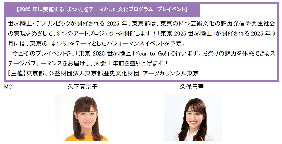 また、2025 年に実施する文化プログラムのプレイベントとして、「 まつ り 」の魅力を体感できるパフォーマンスで大会 1 年前を盛り上げます!