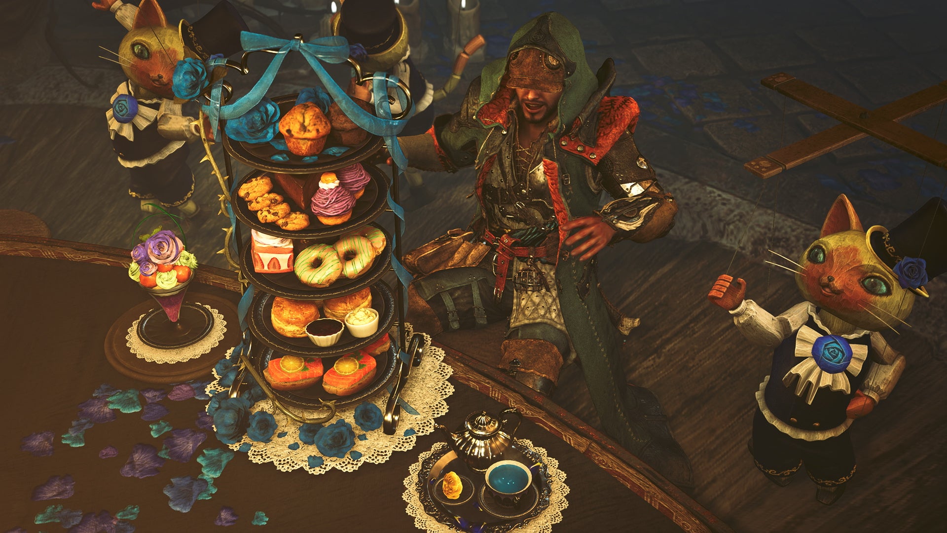 大集会所の装飾や食事が変化し、限定の装備やジェスチャー、簡易キャンプの装飾など様々な報酬が入手できます。一味違った怪しげな大集会所で皆さまをお待ちしています。