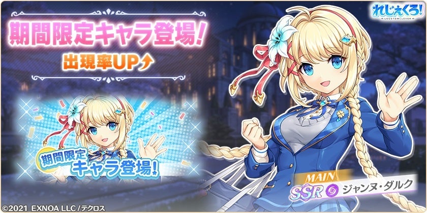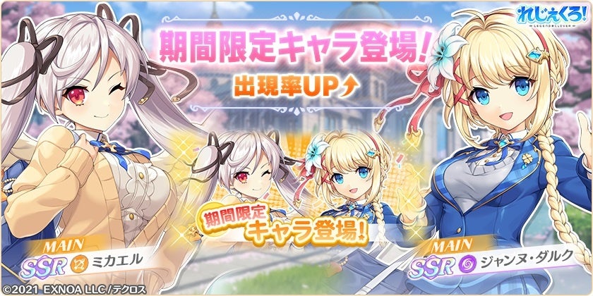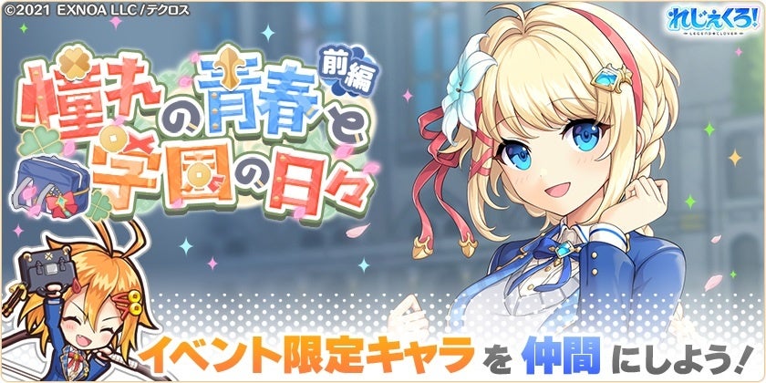 合同会社EXNOA(本社:東京都港区、CEO:村中 悠介、URL:https://games.dmm.com/)が運営するDMM GAMESにおいて、真の英雄となる王道ファンタジー『れじぇくろ!~レジェンド・クローバー~』(https://www.legend-clover.net/)にて、れじぇくろ!初の衣装コンテストで1位になったコスチューム『学生服』に着替えた「ジャンヌ・ダルク」「ミカエル」「真田幸村」が期間限定で登場!さらに、イベント「憧れの青春と学園の日々・前編」が開催!