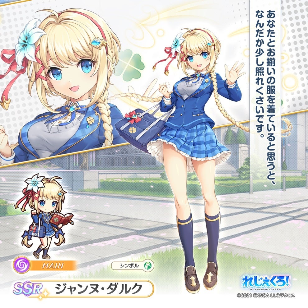 DMM GAMES「れじぇくろ!~レジェンド・クローバー~」にて、れじぇくろ!初の衣装コンテストで1位になったコスチューム『学生服』に着替えた「ジャンヌ・ダルク」「ミカエル」「真田幸村」が登場!