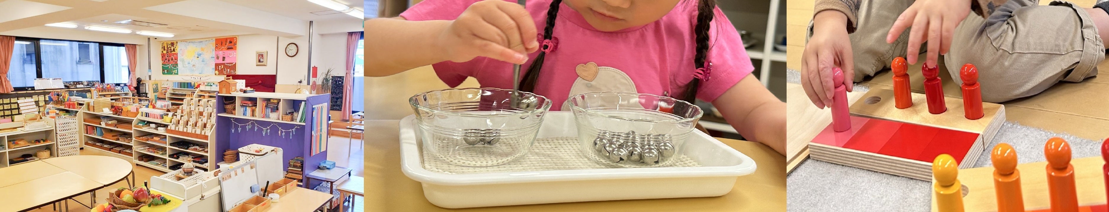 日本モンテッソーリ教育綜合研究所附属『子どもの家』では、モンテッソーリ教具をはじめ、子どもの興味を引きつける教材・教具が豊富に用意されている環境の中で、1学年10名程度を定員とし、モンテッソーリ教育の専門知識を持つ教師が子どもの自立と自律を援助しています。