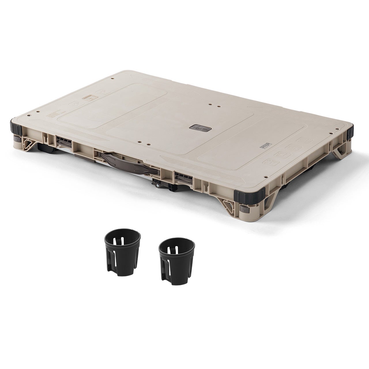 ●飲み物を入れられるカップホルダー2個付きで、テーブルの4カドの好きな位置に飲み物を安定して置くことができます。