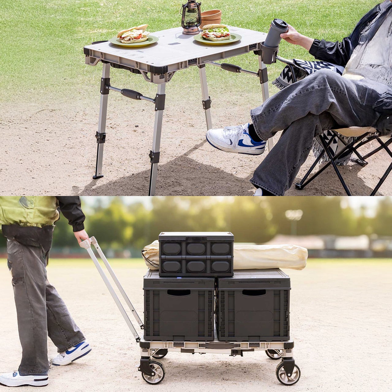 ●荷物を運んだ台車がそのままテーブルになるので、アウトドアではこれ1台で大活躍です。