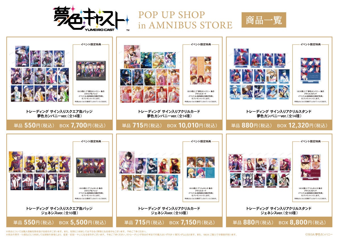 今回のイベントでは、『夢色キャスト』より新規グッズを多数先行販売する他、AMNIBUS STORE限定購入特典の配布を予定しております。