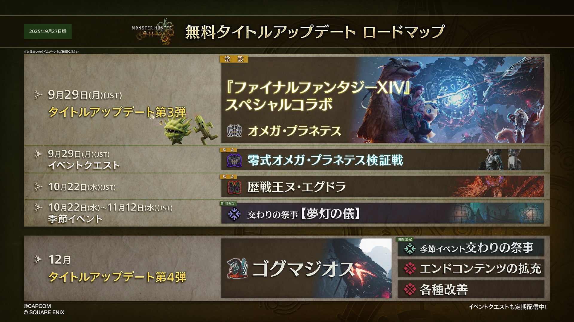 ◆『モンスターハンターワイルズ』無料タイトルアップデート ロードマップ(2025年9月27日版)