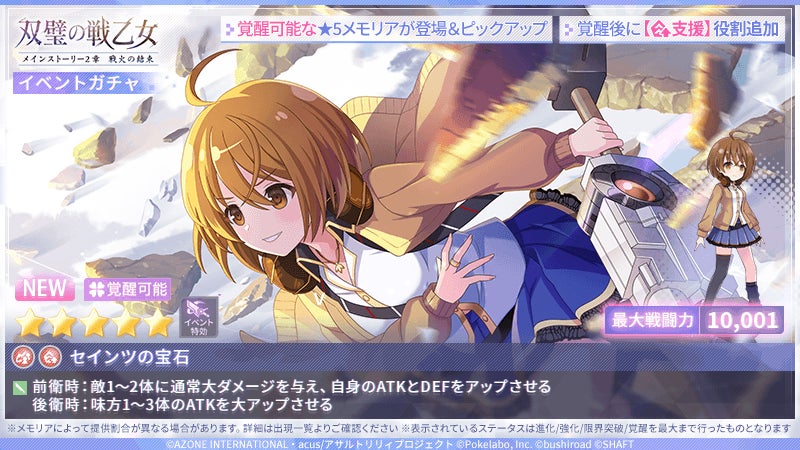 - 御台場女学校のリリィが★5新メモリア「暴君の花嫁」「劔の妖精」「セインツの宝石」が登場するガチャを開催!