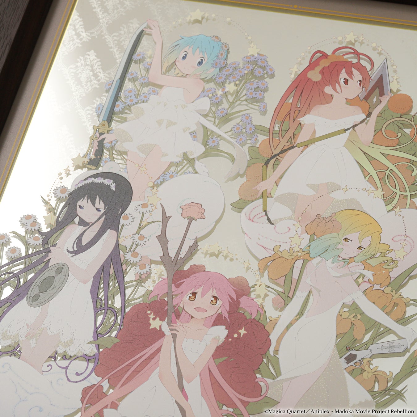 「劇場版 魔法少女まどか☆マギカ[新編]叛逆の物語」公開時に制作された描き下ろしのイラストを使用した木枠のついたガラス製のミラーです。