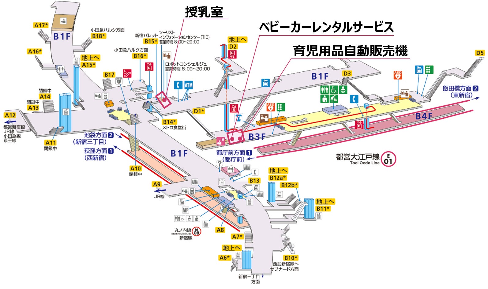 このたび、9月13日(金)から新宿西口駅と門前仲町駅にも新たに展開することとしましたので、お知らせいたします。乳児用液体ミルクや紙おむつなどの育児用品を購入できる自動販売機や、ベビーカーのレンタルサービスをご利用いただけるほか、新宿西口駅では、ツーリストインフォメーションセンター内に授乳室を新設いたします。