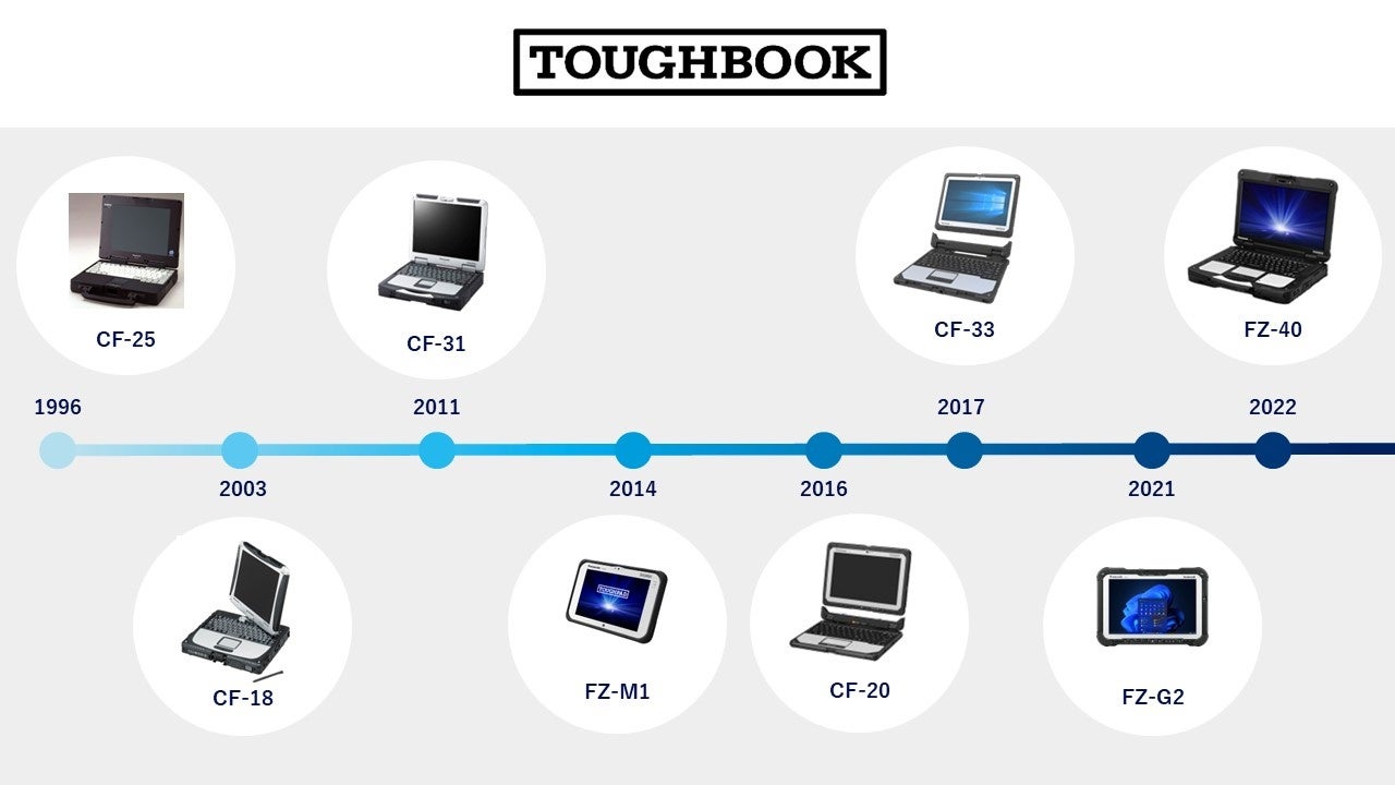 同様に1996年に現場向けの頑丈ノートPCであるタフブック「CF-25」を発売。オフィス以外の作業現場へのIT機器の導入がいち早く行われていた欧米で、屋外作業時にも壊れずに使用できるノートPCとして評価されました。
