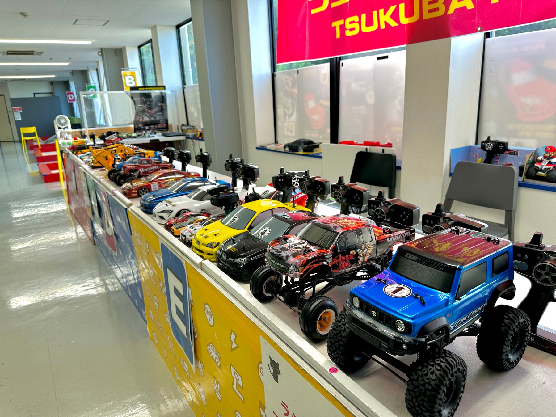 明るく開放的な雰囲気で、休憩スペースも充実しており、ラジコン未経験の方や家族連れの方でも安心してご利用いただけます。