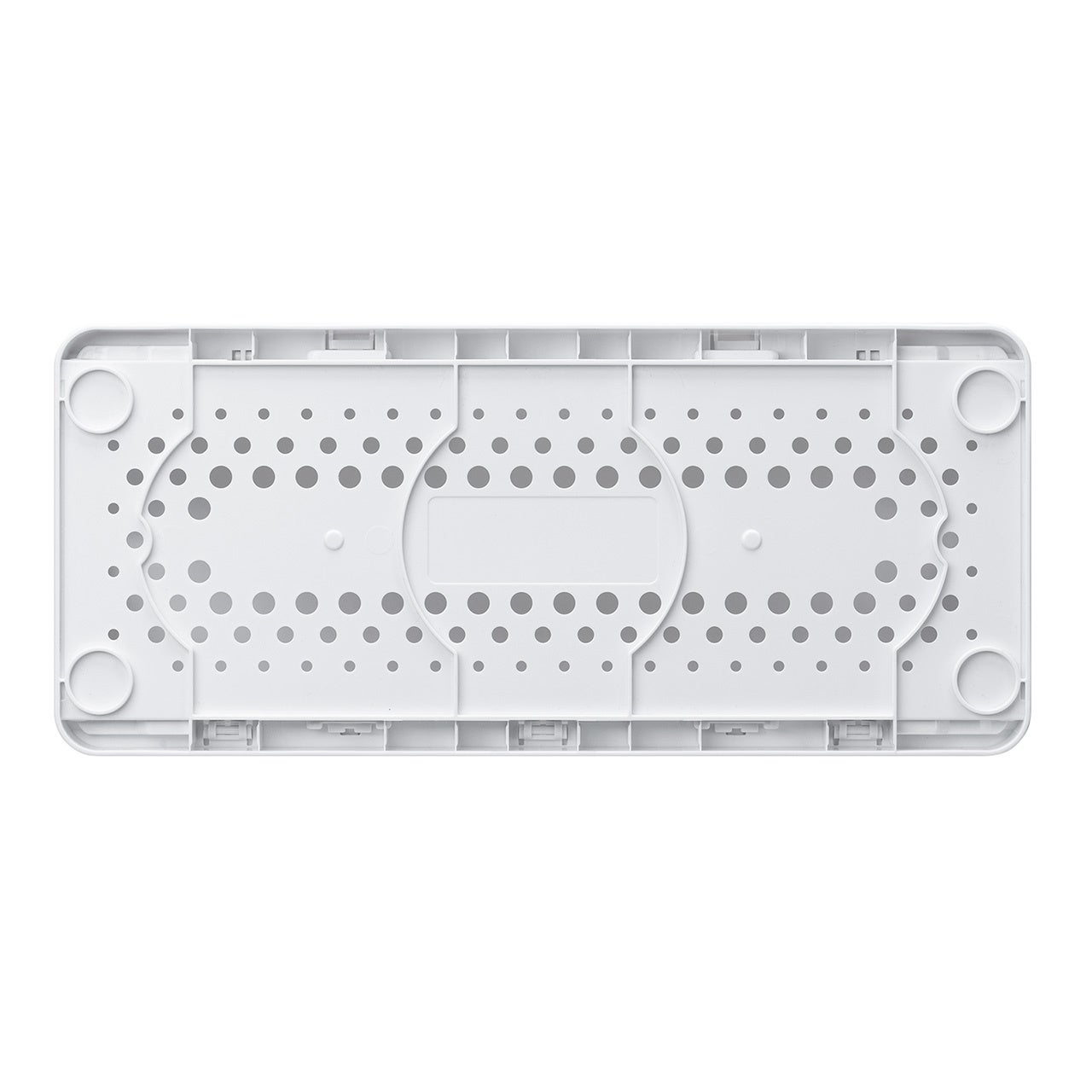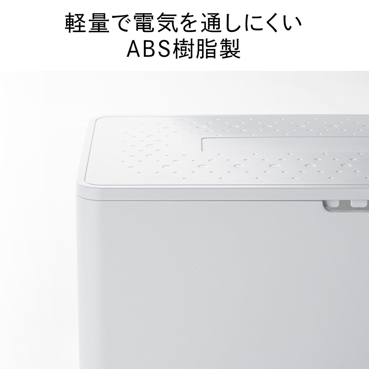 底板部分には穴があいており熱が籠もりにくい構造です。ABS樹脂製なので、軽量で電気を通しにくいです。