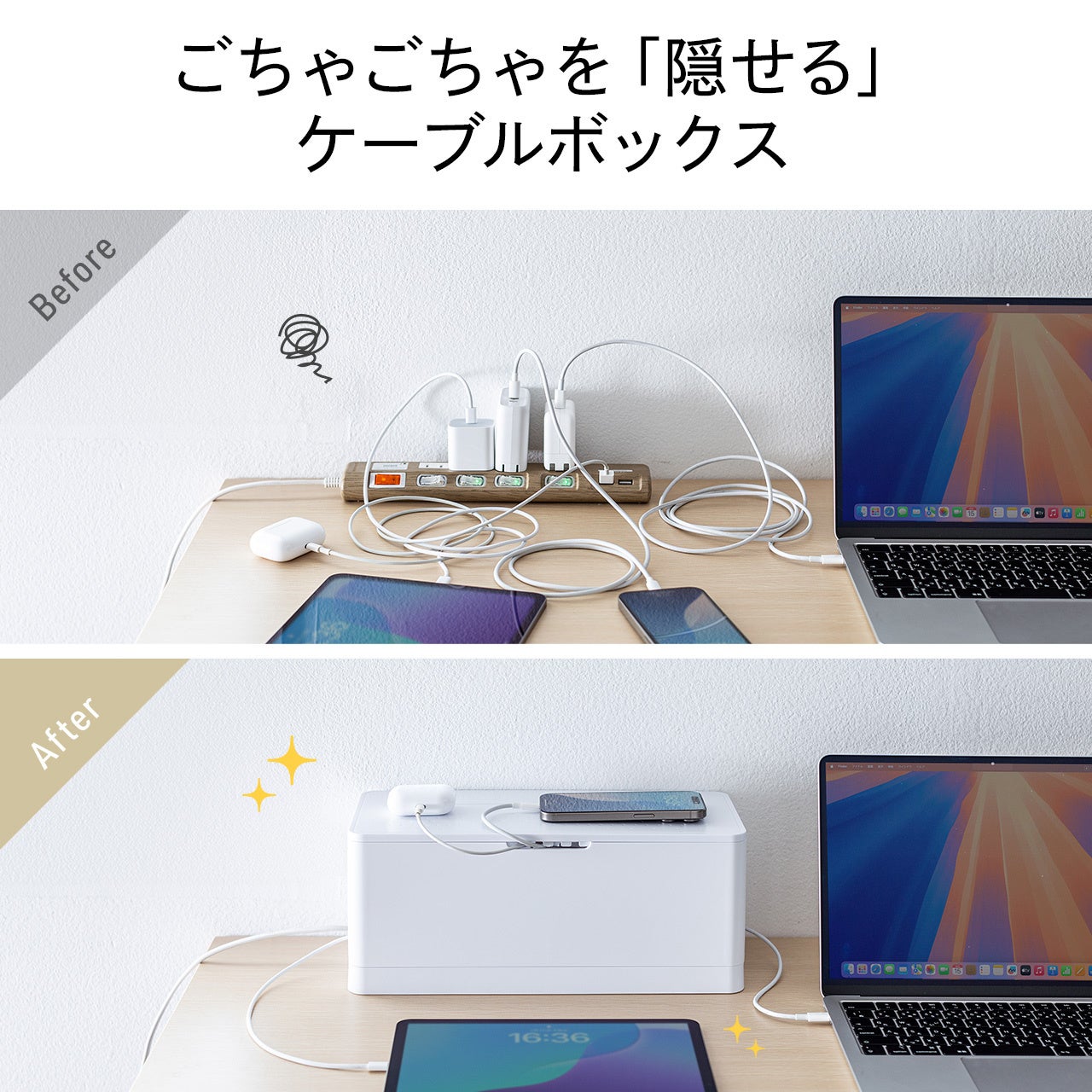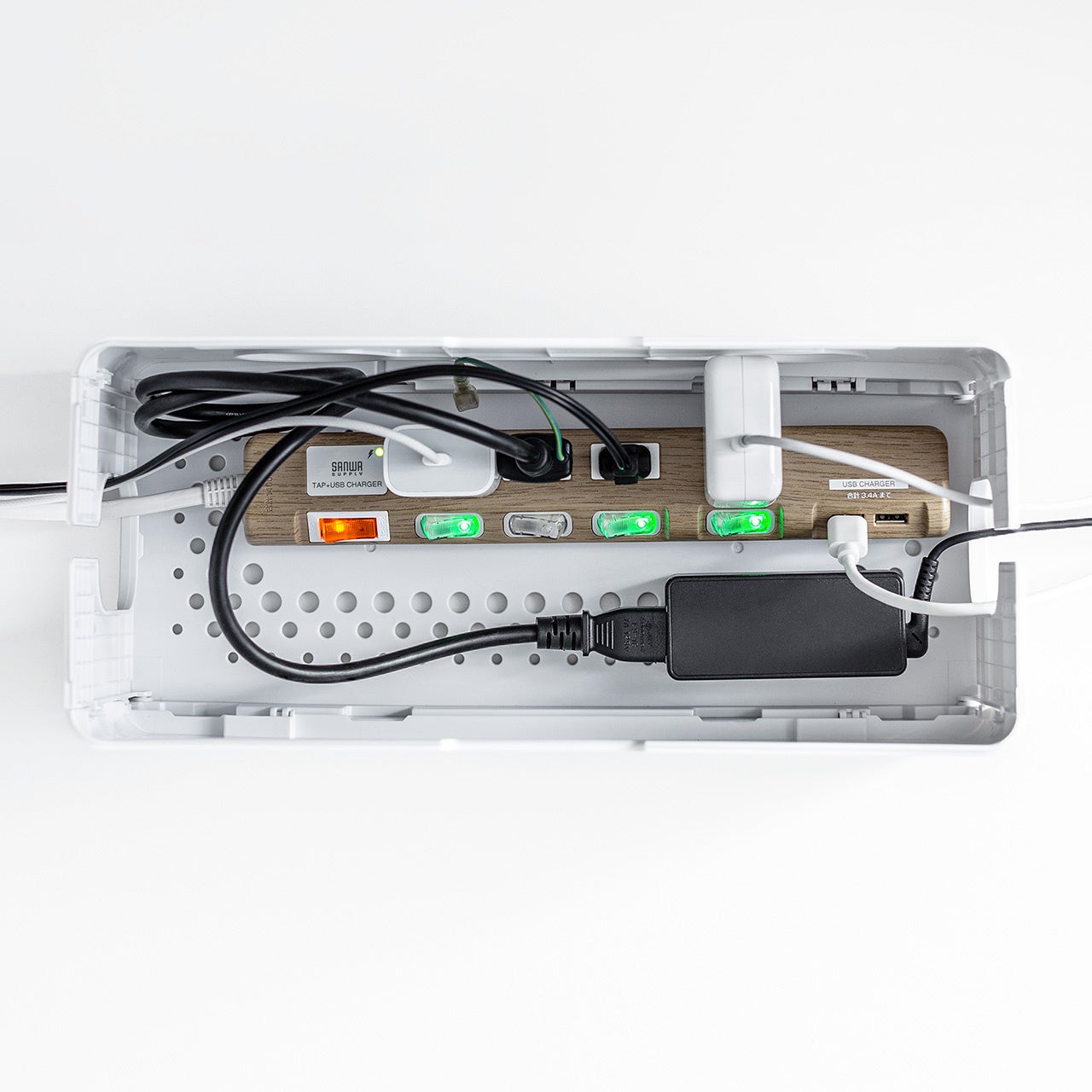 本製品は、ケーブルや電源タップなどが綺麗に収納できるボックスです。