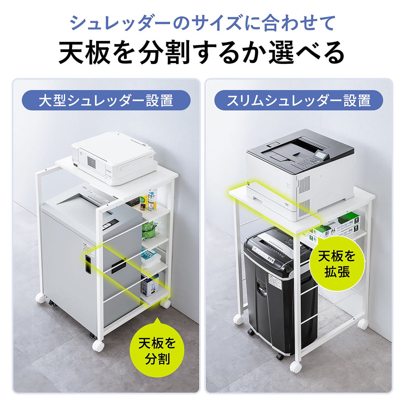 プリンタ&シュレッダーをまとめて収納できる多機能プリンタ台を発売