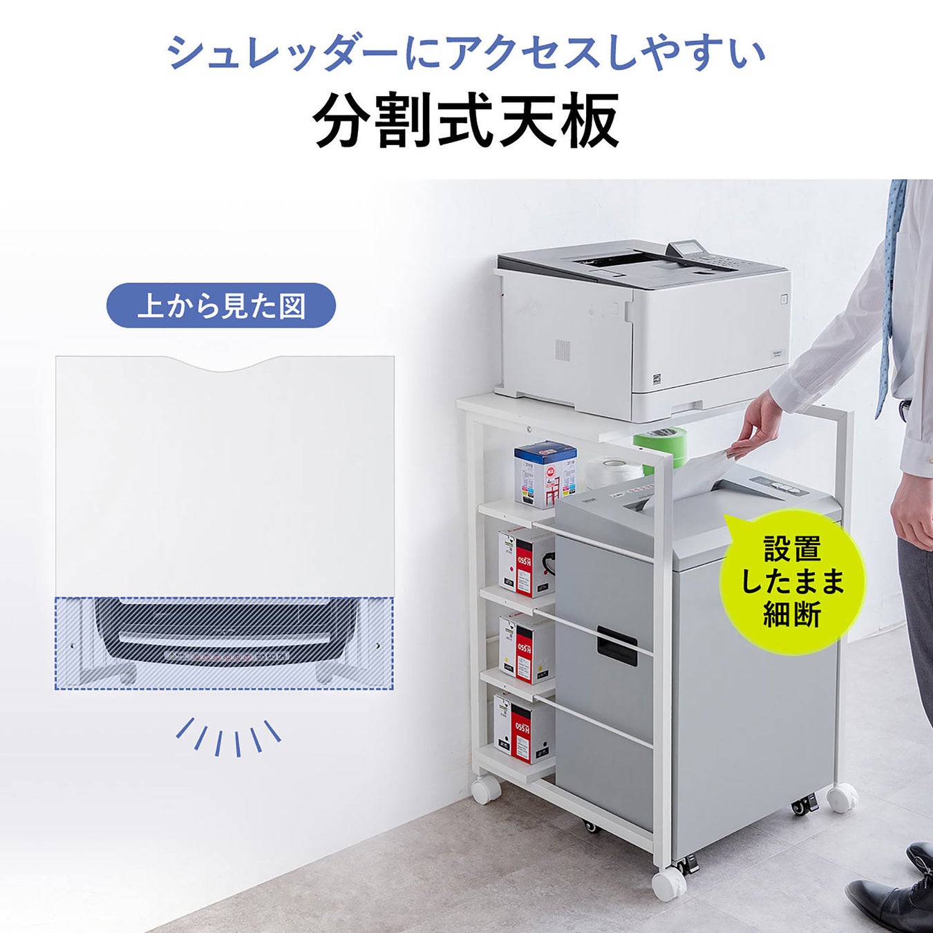 ●シュレッダー対応の分割天板で快適アクセス