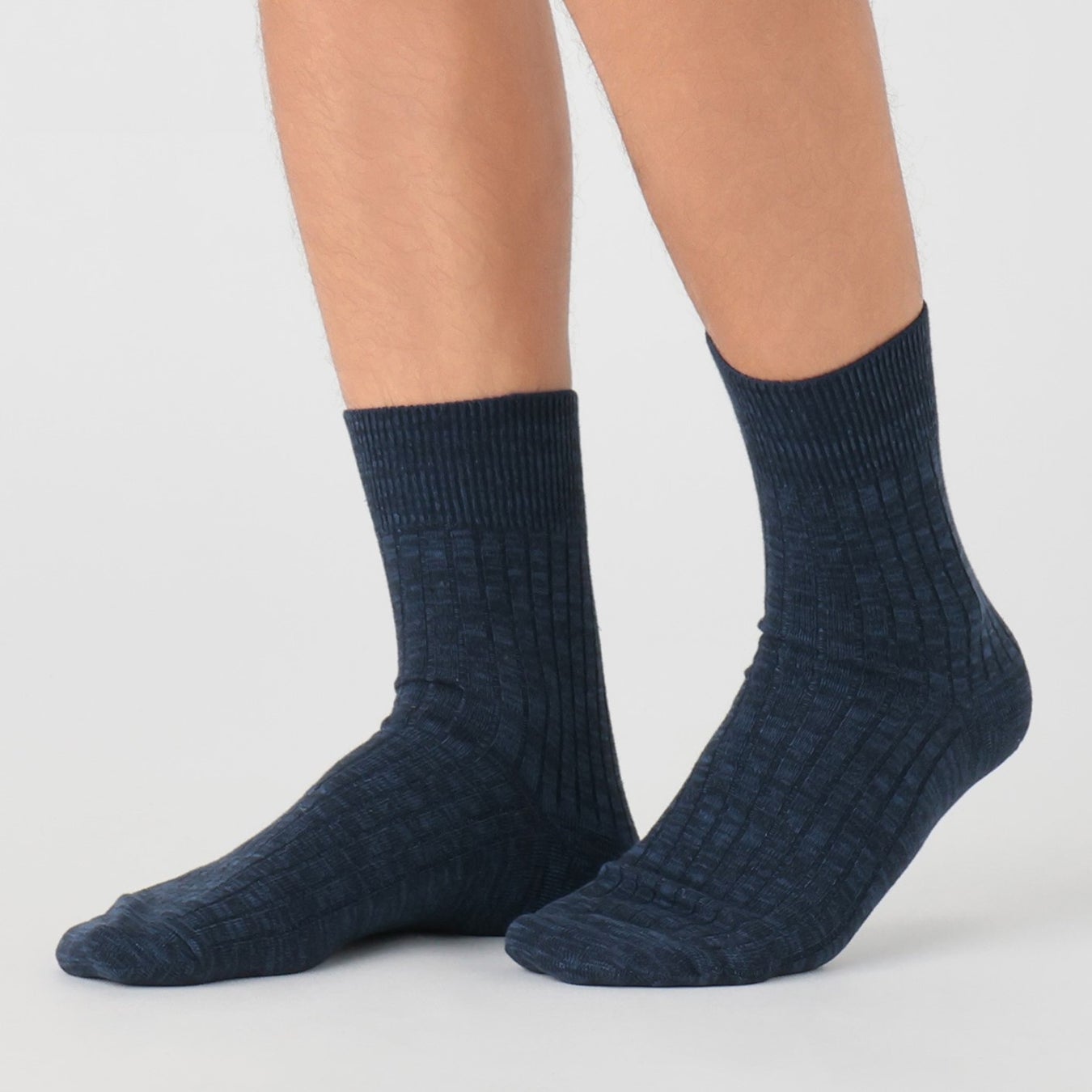 オン・オフで使いやすいリブ編みソックスです。汗のにおいを抑制する消臭機能付きです。