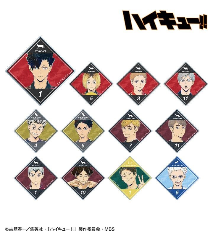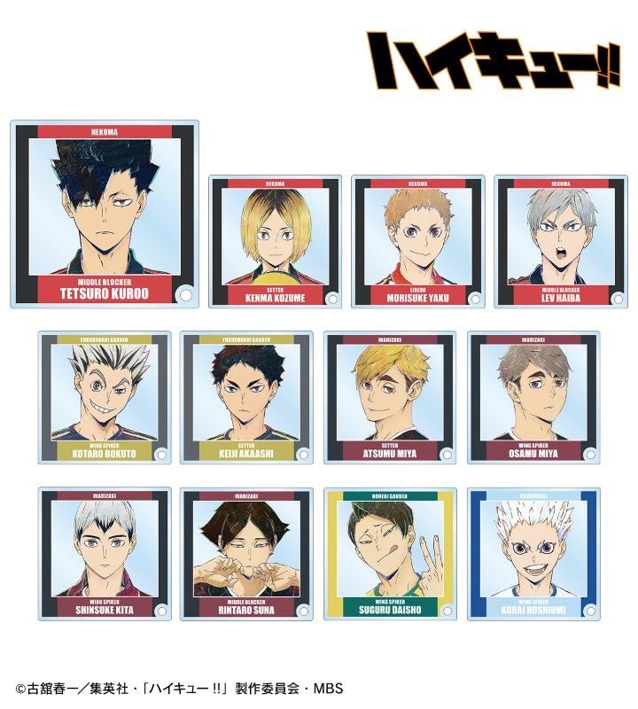 種類 :全12種(黒尾鉄朗、孤爪研磨、夜久衛輔、灰羽リエーフ、木兎光太郎、赤葦京治、宮侑、宮治、北信介、角名倫太郎、大将優、星海光来)