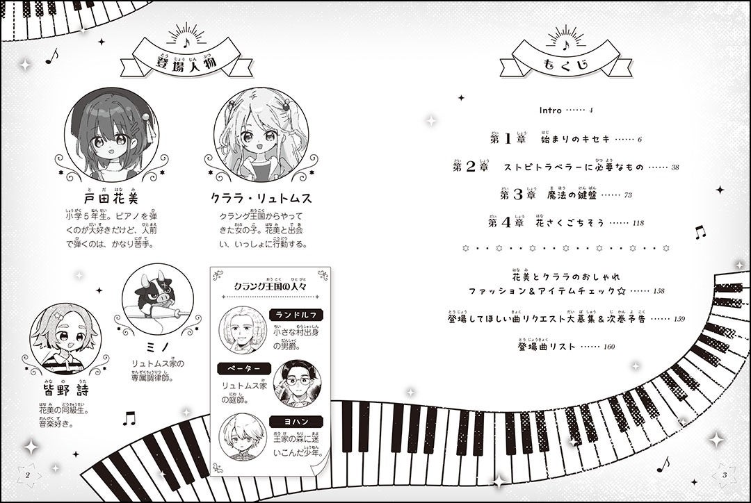 本作は、主人公の花美と相棒のクララが力を合わせ、ロールピアノやストリートピアノの演奏を通して、世界中のいろいろな問題を解決し、人々に夢や希望を与えていく物語です。作家・柴野理奈子さんが紡ぐ、ふたりの女の子の友情と成長のお話としても楽しめます。